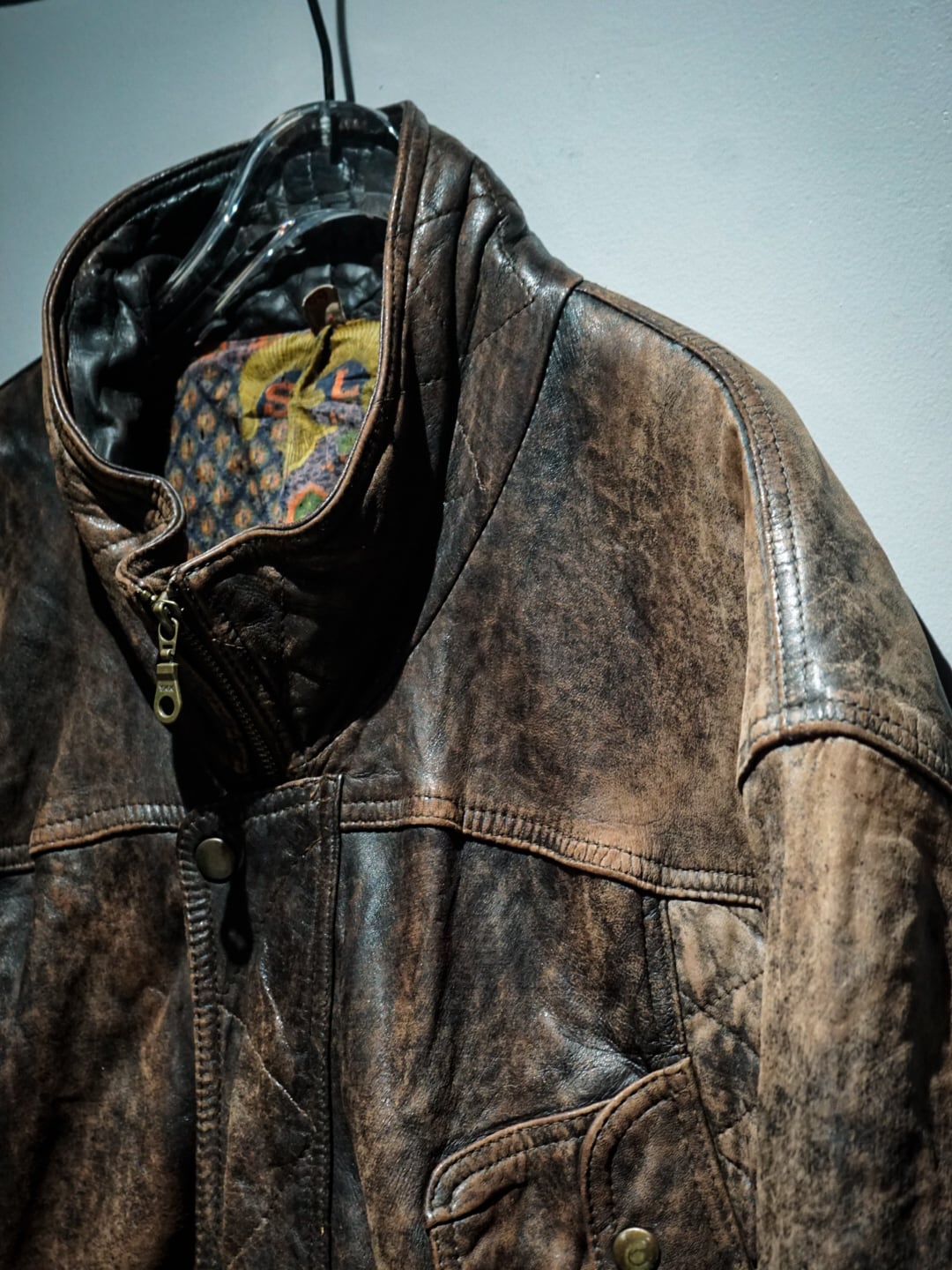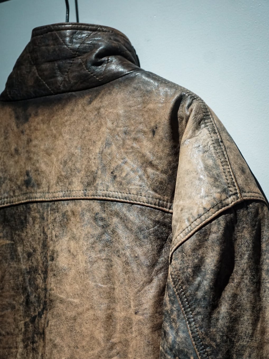 レザーならではの味わい深さ、そして古着ならではの面白さがギュッと詰め込まれた、美しい表情を見せるレザージャケットからのスペシャルな逸品です。