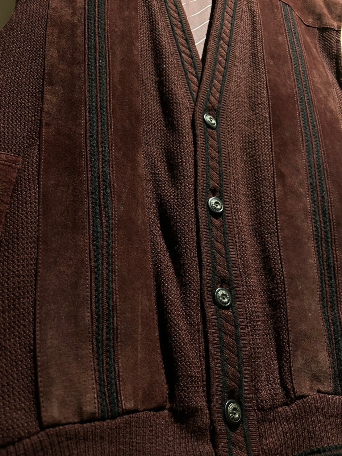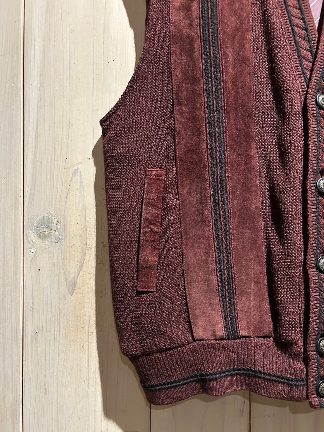 上品で深みのある濃いワインレッドをベースとしたスペシャルなニットベスト。