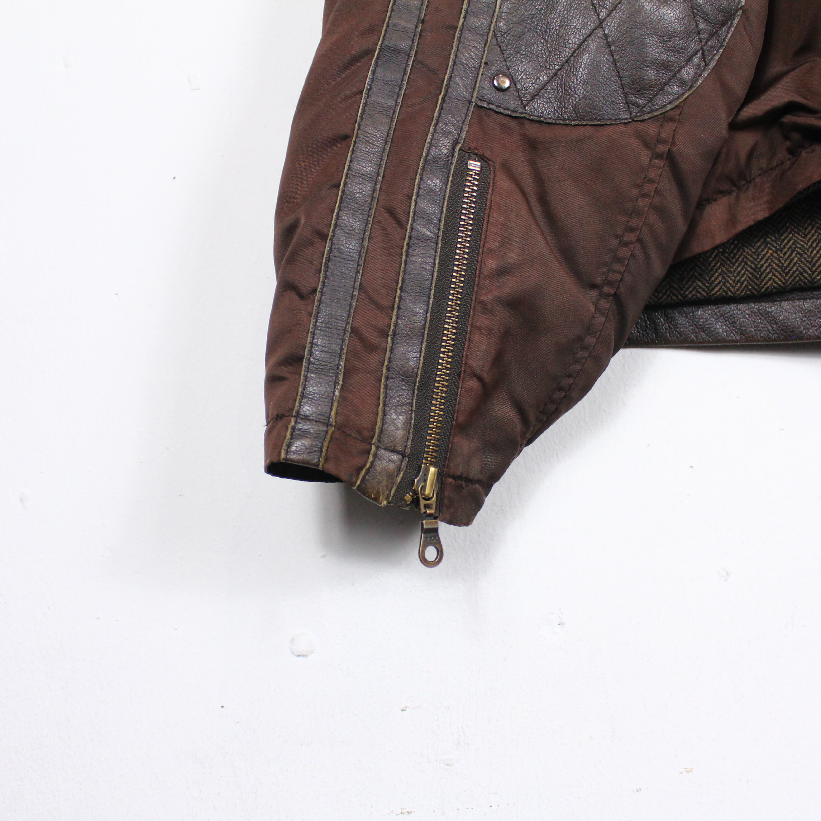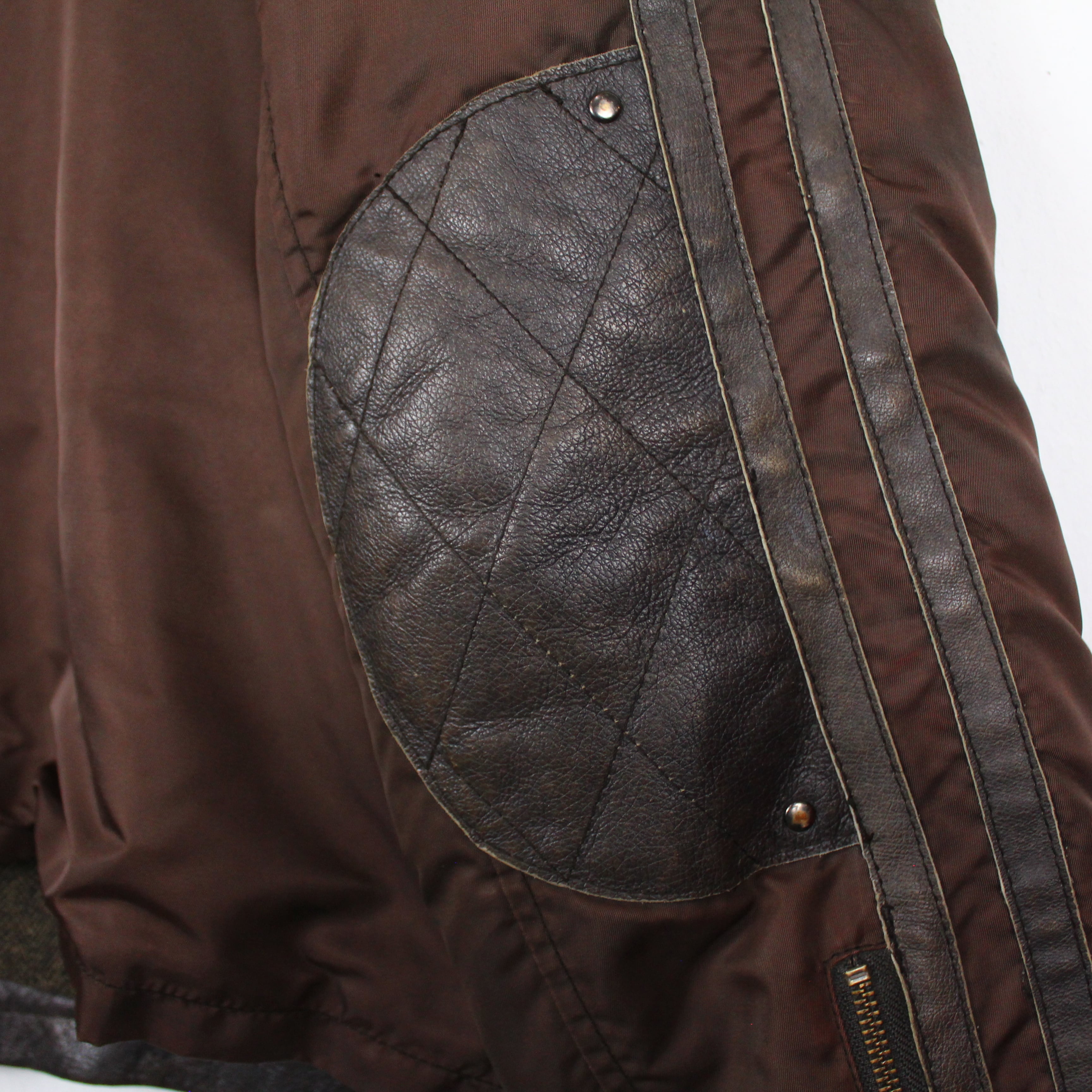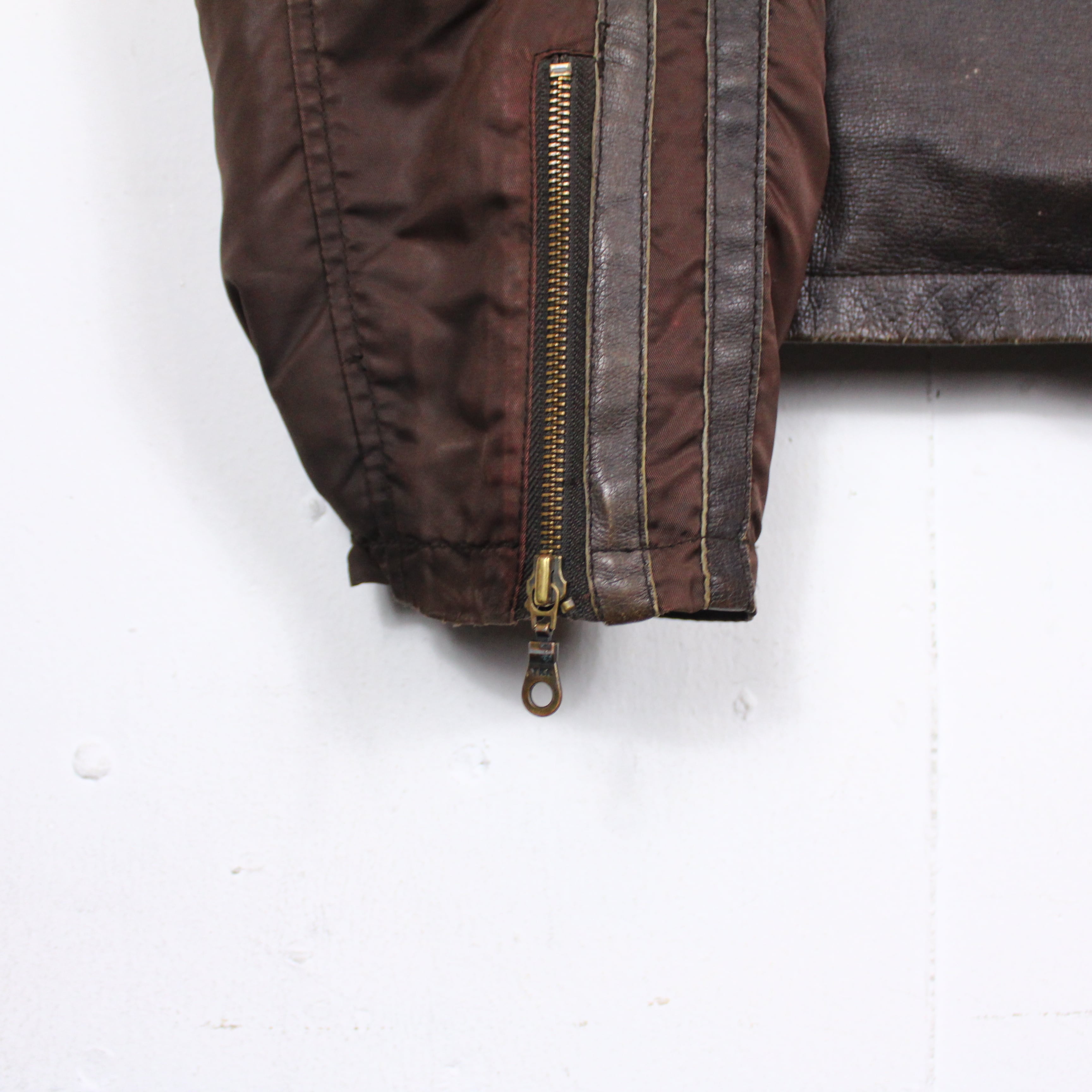 ナイロン生地をベースにツルッとしたブラウンのスムースレザーをフロントに切り替えたジャケット。異素材の掛け合せによって生まれる陰影が、他アイテムにはなし得ない独特の表情を生み出しています。