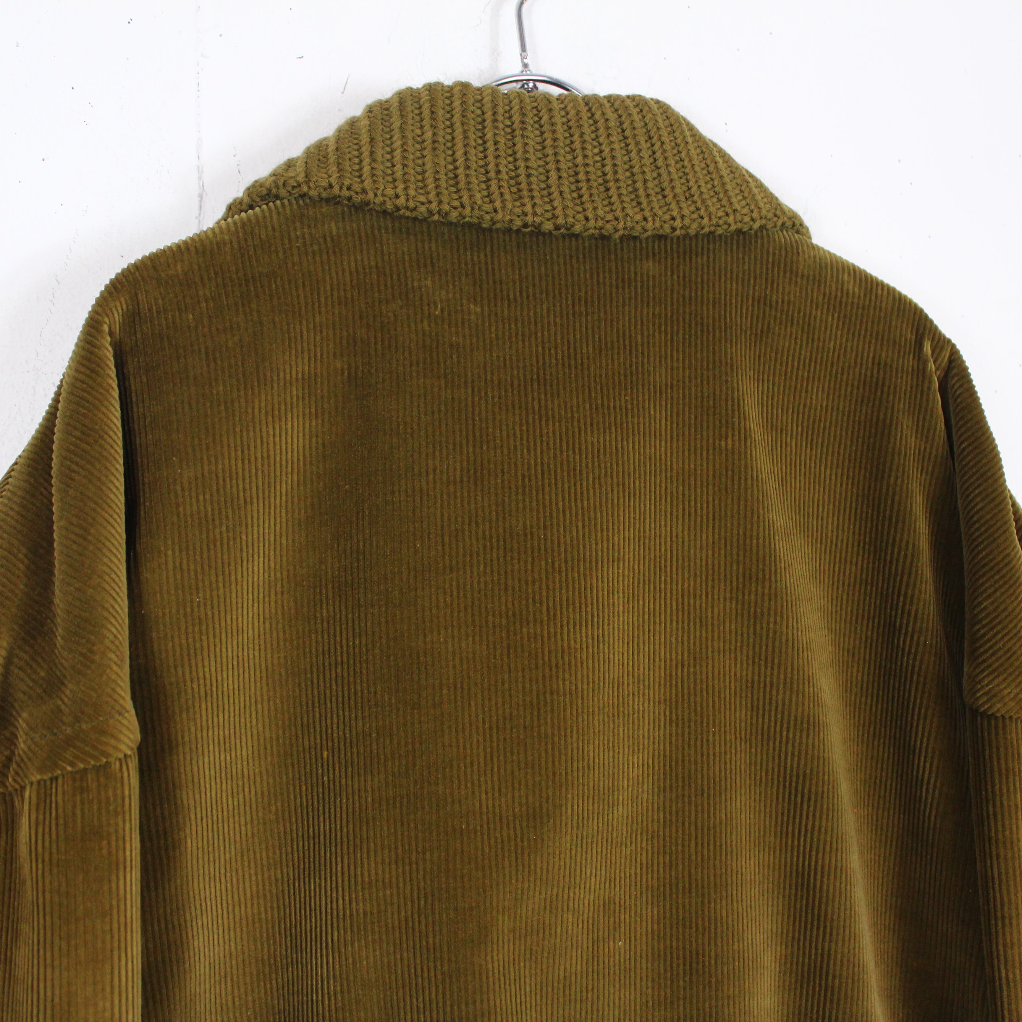 独特の光沢を放つブラウンのコーデュロイをベースに襟、裾、袖口のリブにニット素材を切り替えた稀有な切り替えジャケット。