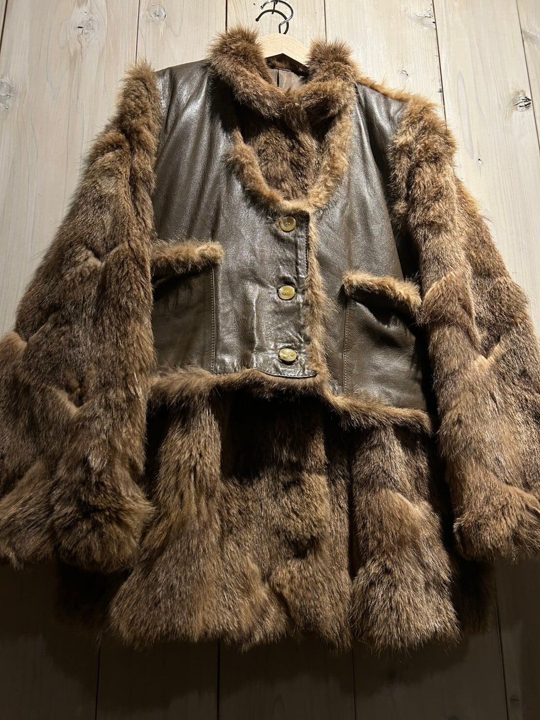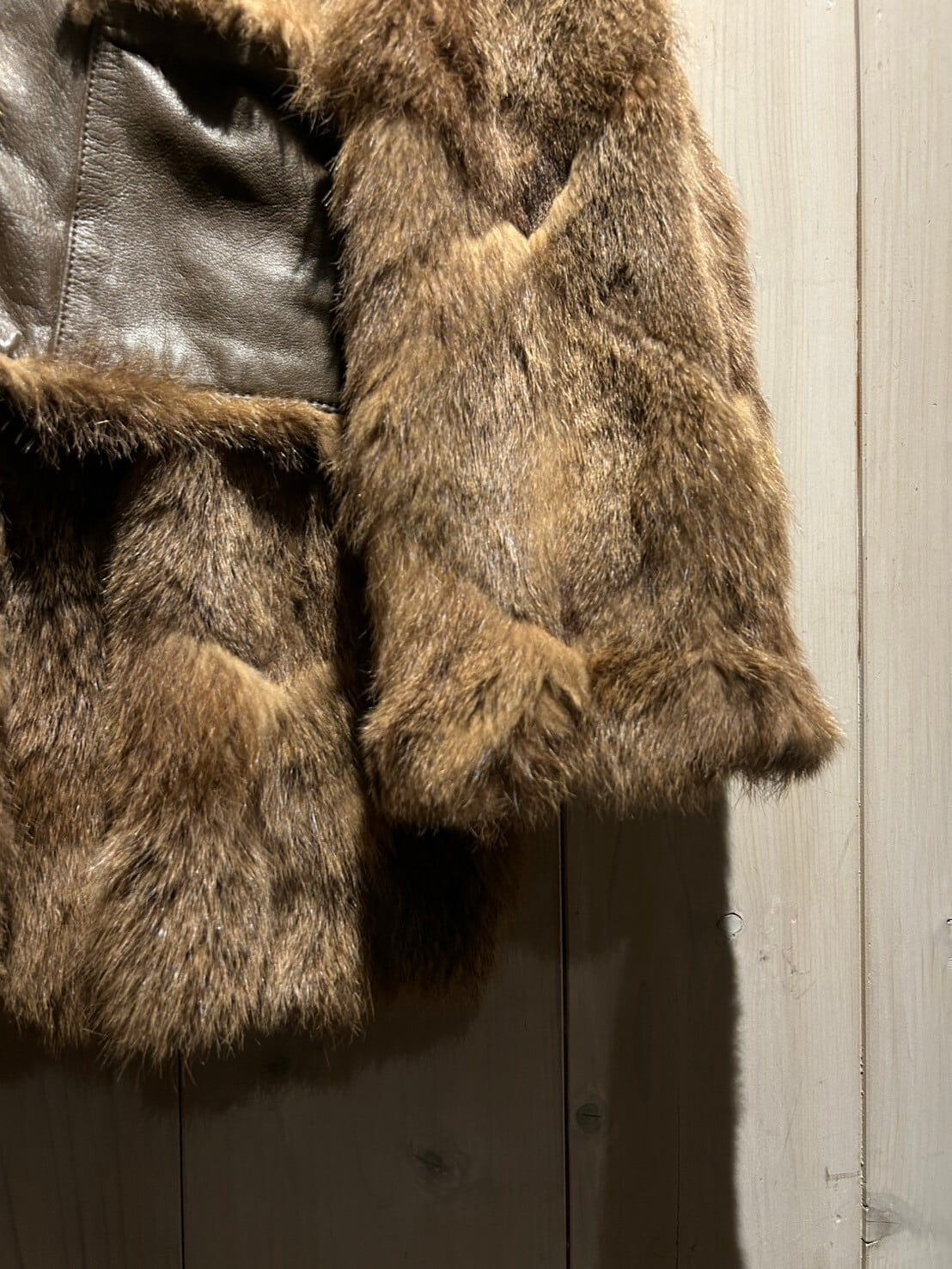 毛足が長くもふもふなファーをベースに、柔らかく滑らかな質感のブラウンレザーをベスト状に切り替えた超〜スペシャルな1着。