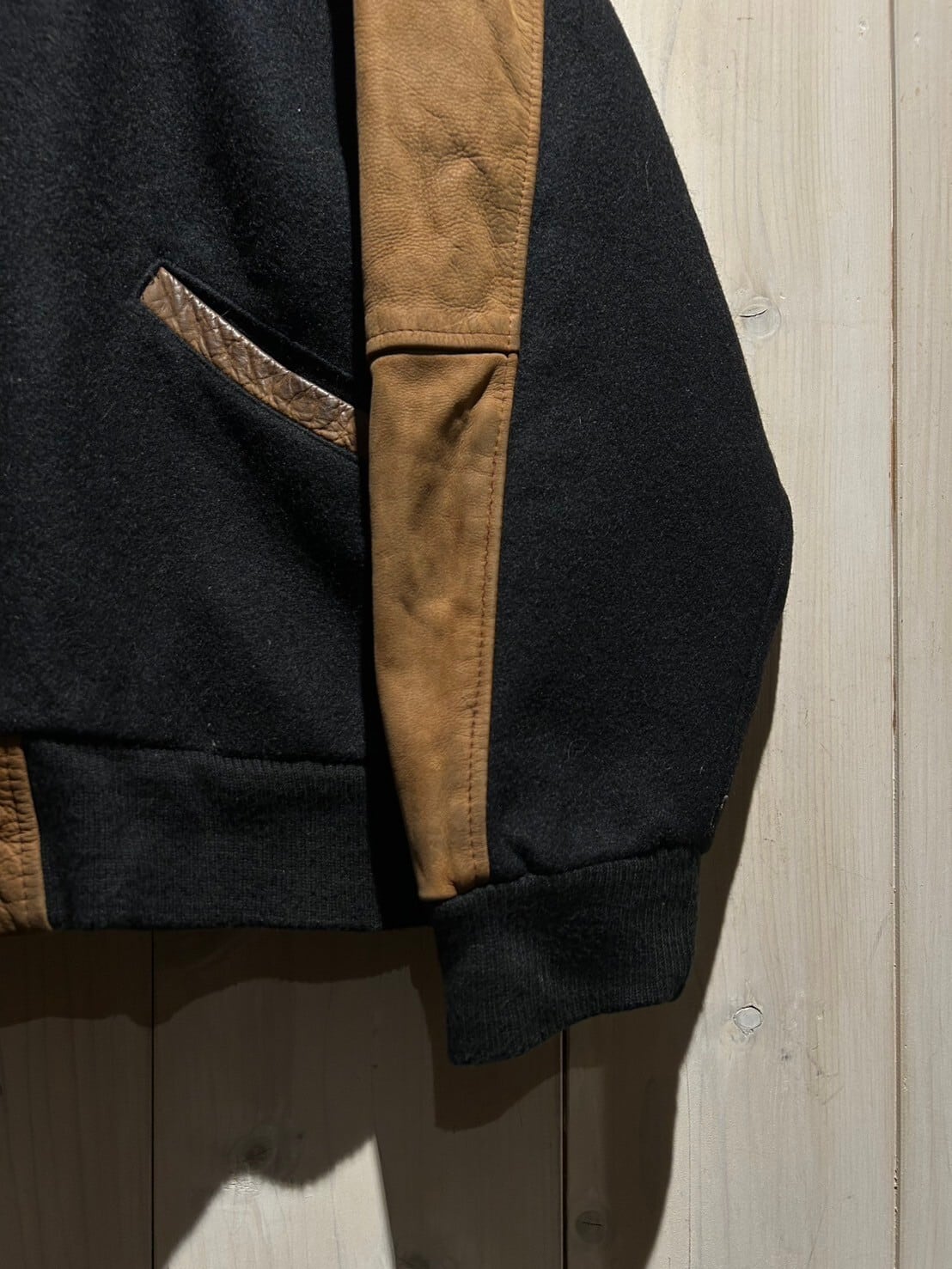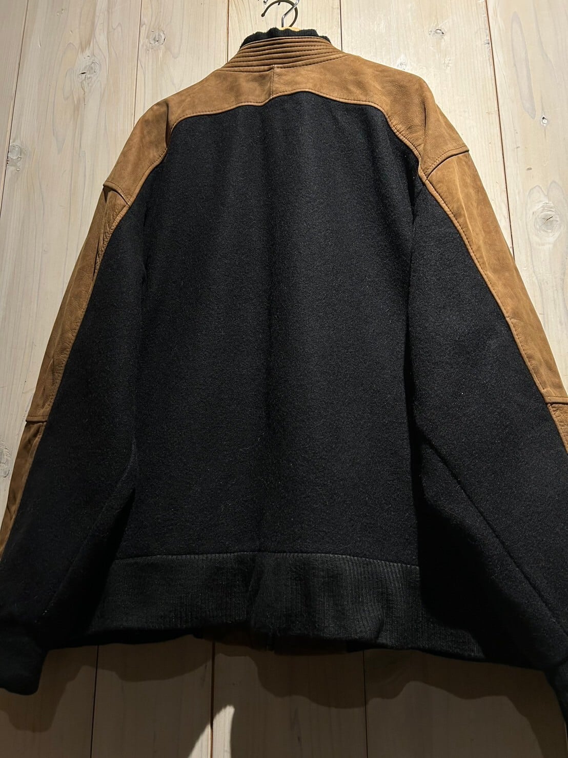 ブラックのウールボディをベースに、襟から肩、袖口にかけて渋みのあるブラウンのスエードレザーを切り替えたブルゾンジャケット。