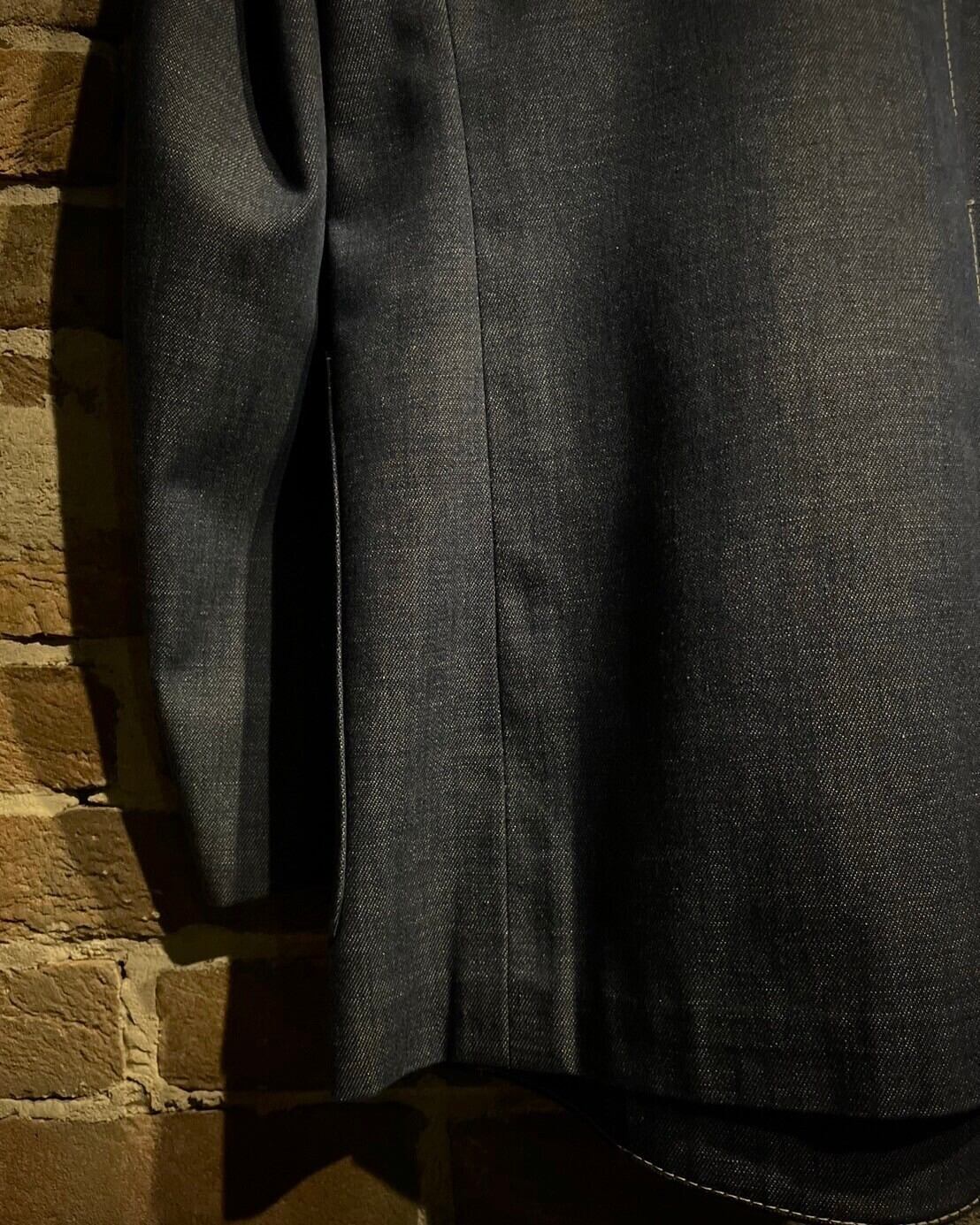 デニムのようにコシのある素材をベースを用いた70's ヴィンテージのテーラードジャケット。