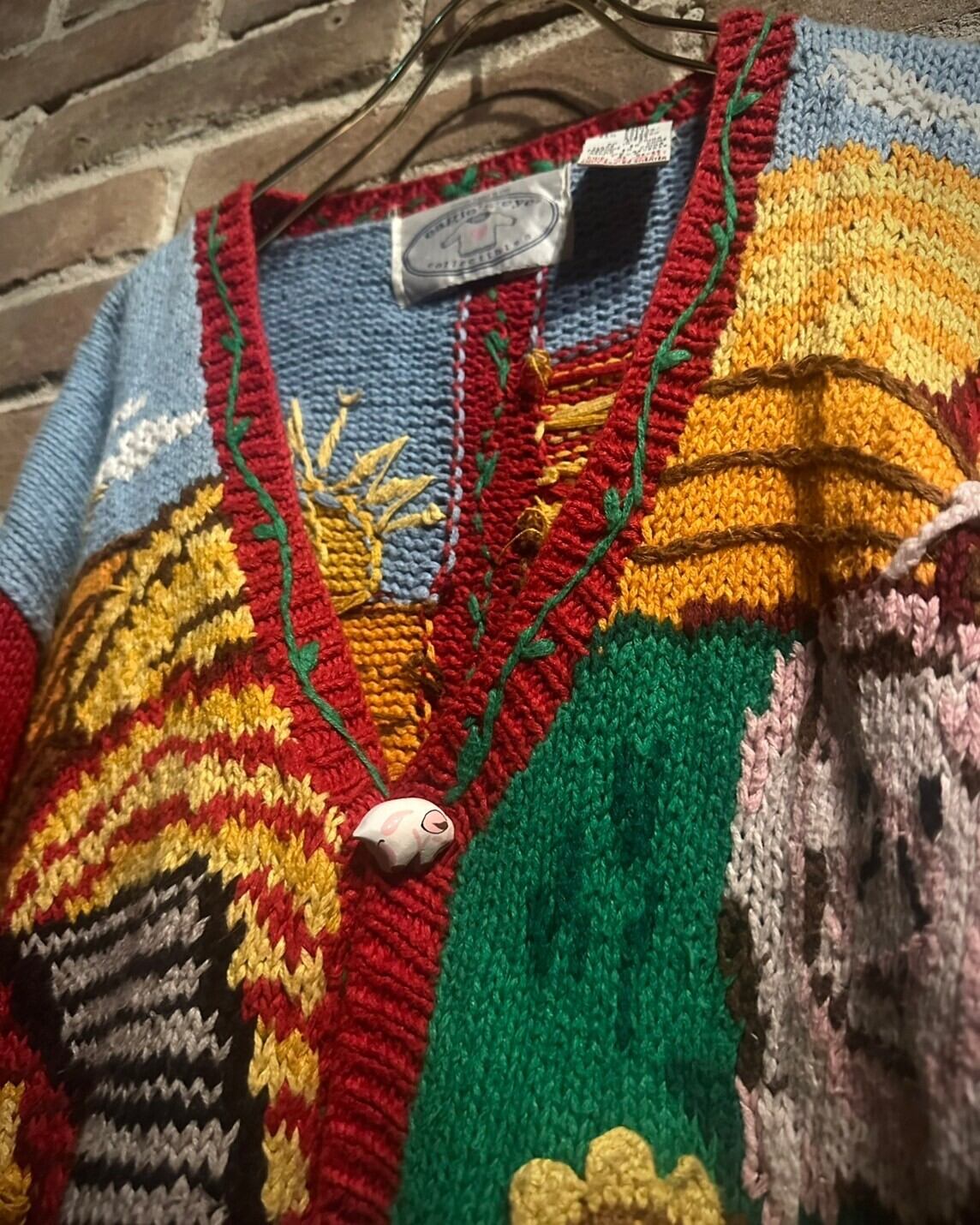 ひまわりを模ったニットのパッチやフロントのボタン等の作り込みも素晴らしく、ヴィンテージならではのデザイン性の高さを誇ります。
