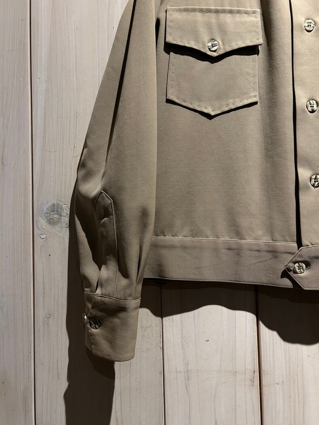 アメリカ陸軍が第二次世界大戦時に用いていた"バトルドレスジャケット"をサンプリングしたショート丈のギャバジンジャケット。