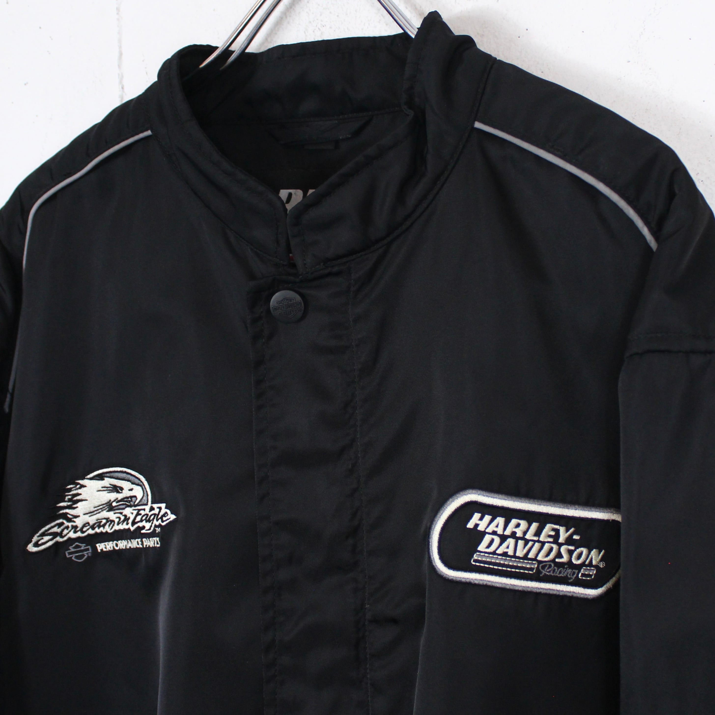 シャリ感がありタフなナイロン素材から成るシングルレーシングジャケット。ハーレーでナイロン素材のアイテムは希少です。