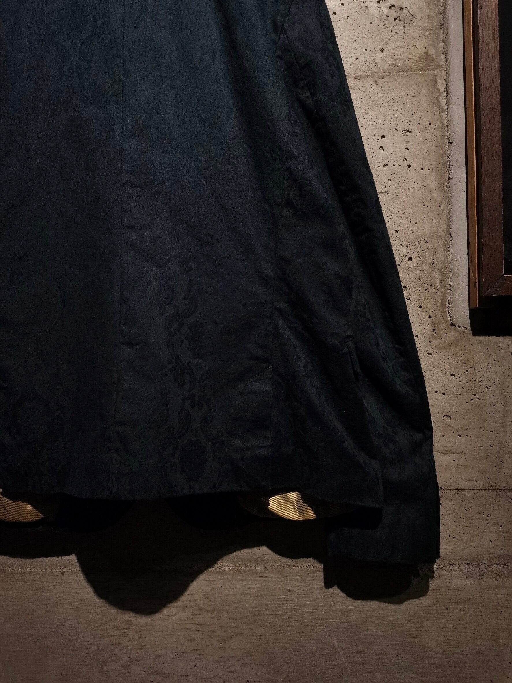 繊細なジャガード織りによって、墨黒カラーのボディに美しいダマスク柄を映し出した1着。