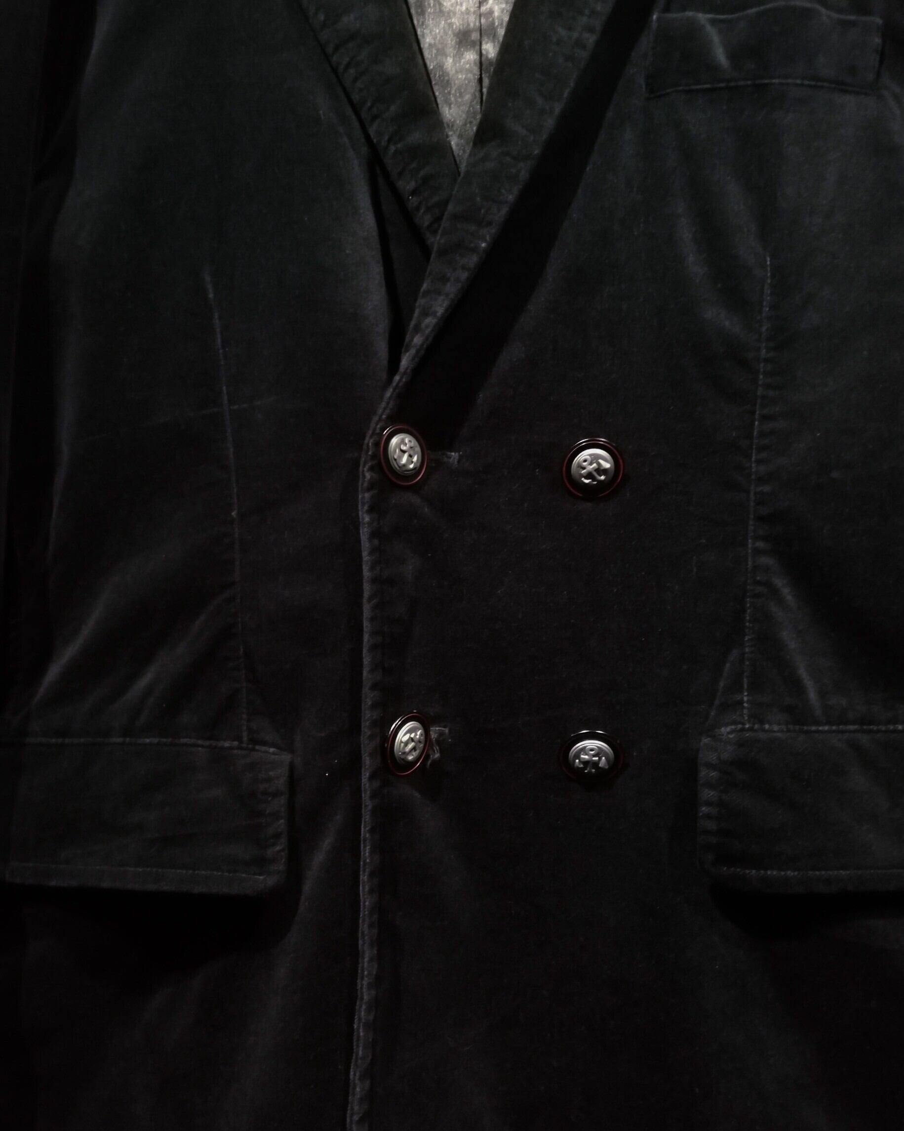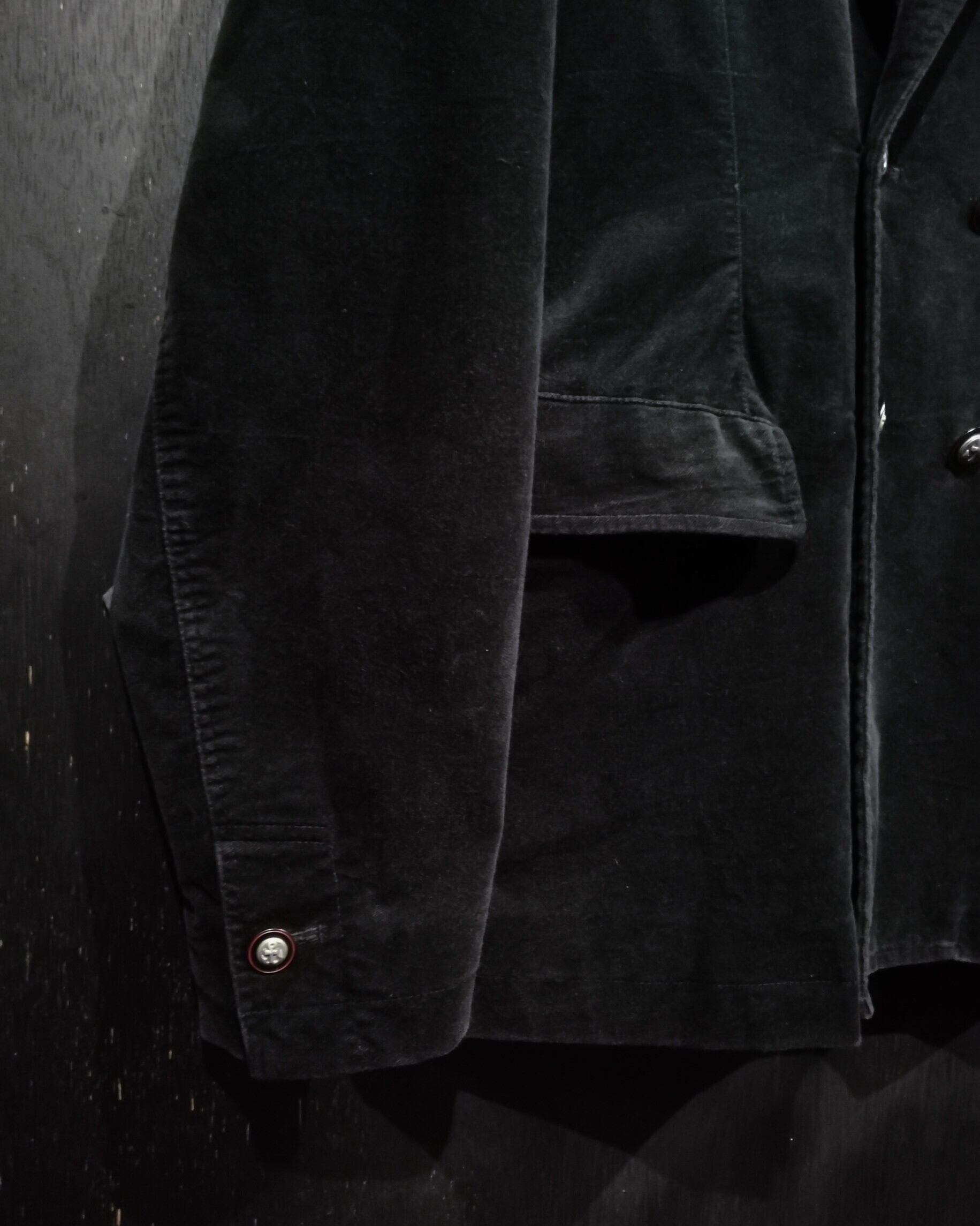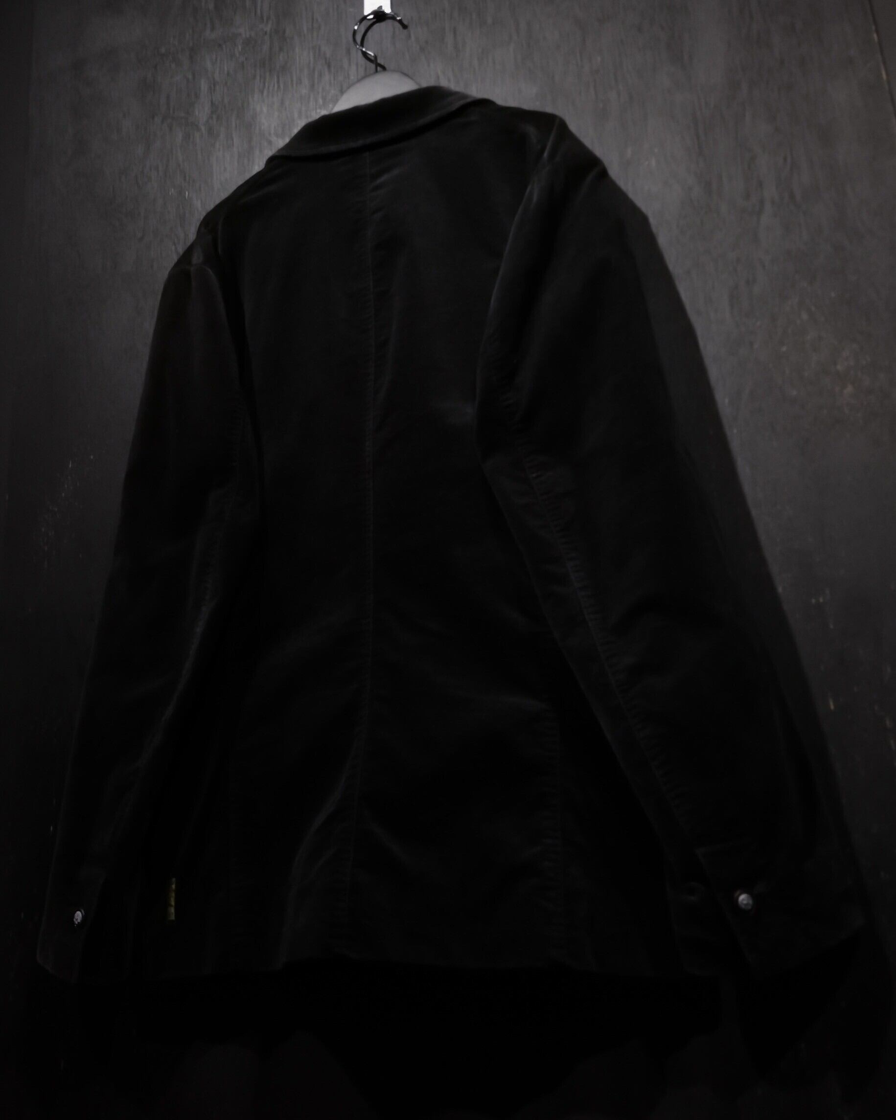 鈍く光沢を放つブラックベロアを用いた、極上テーラードジャケットの逸品。