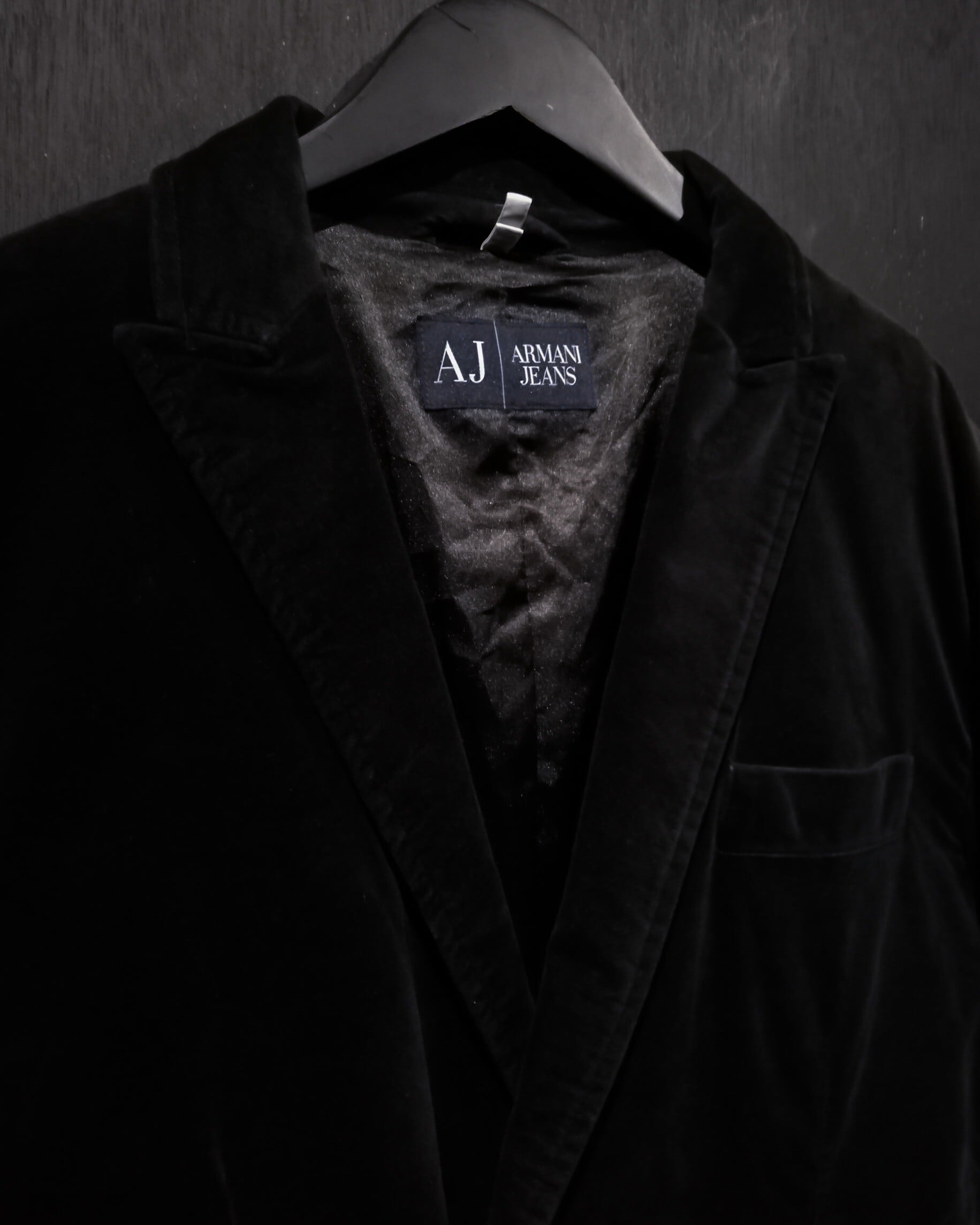 極上ベロアを用いて、ブランドならではの高いテーラリング技術によって生み出された高級感を漂わせる“ARMANI JEANS”からの逸品です。