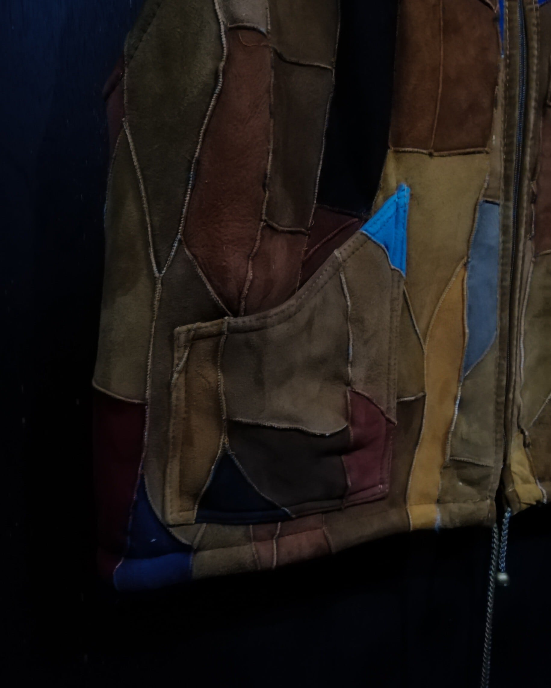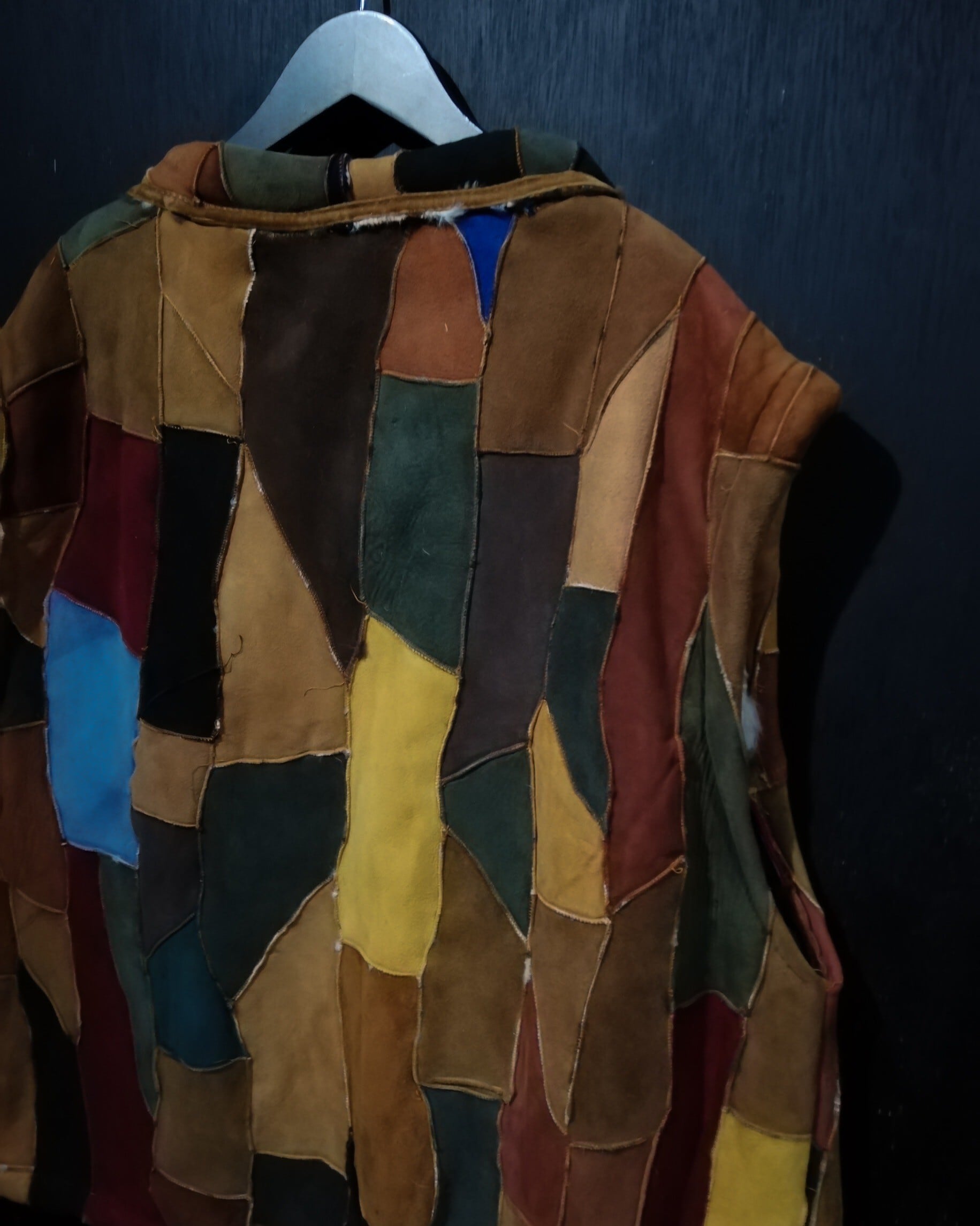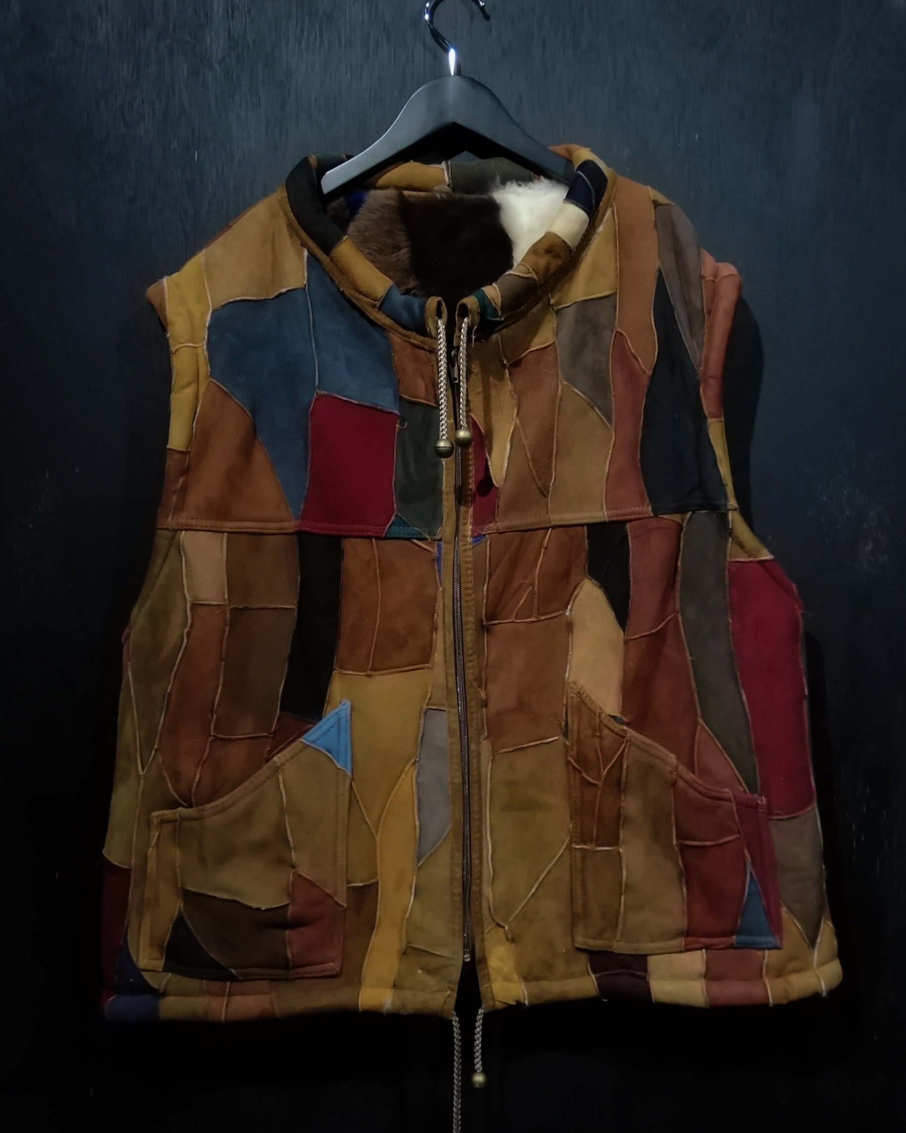 しっとりと柔らかく上質なスエードレザーを用いて、パッチワークで仕上げたスペシャルなベスト。