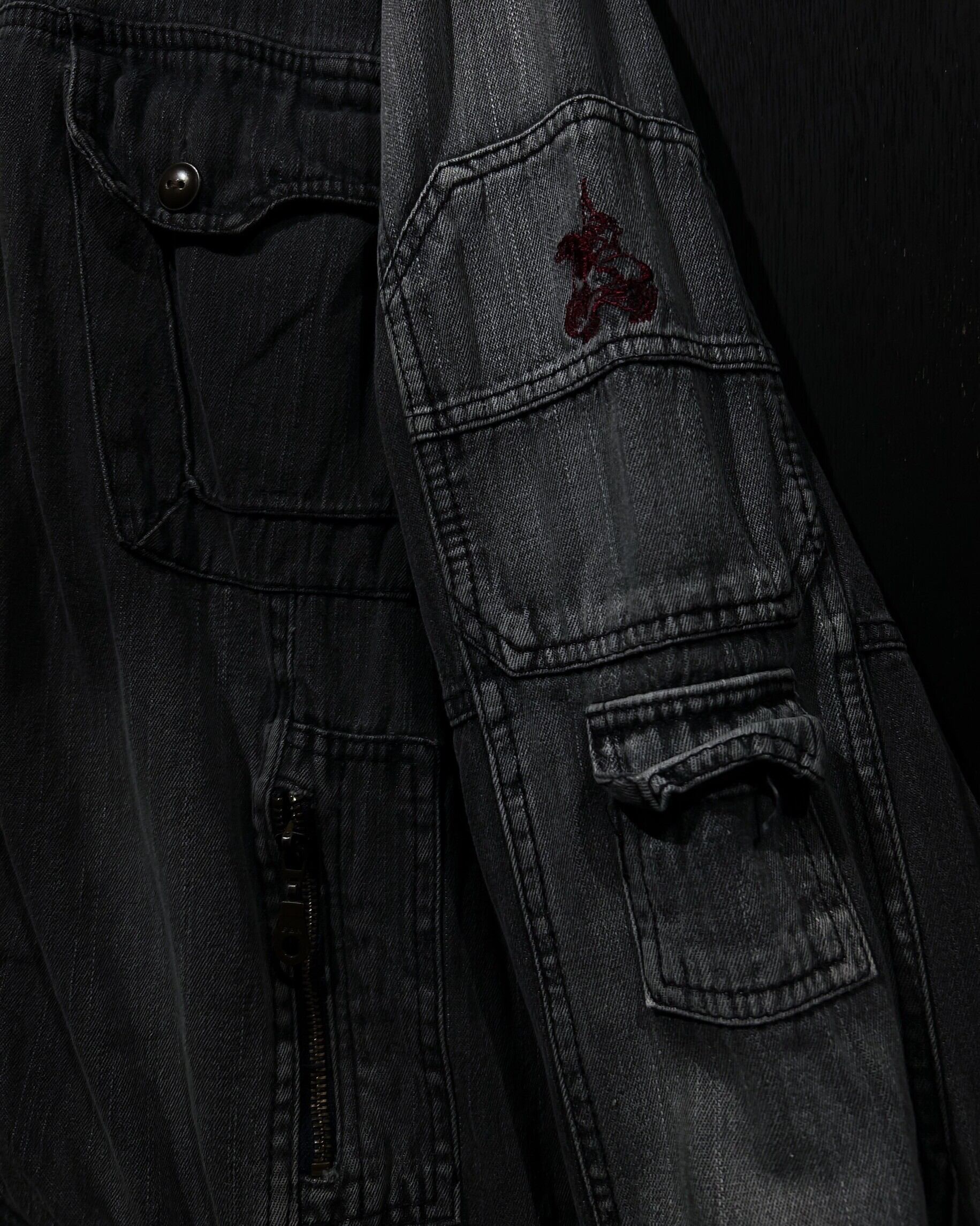 フェードしたグレーのボディをベースに、フラップポケット、ジップポケットなど様々なギミックを載せたデニムジャケット。