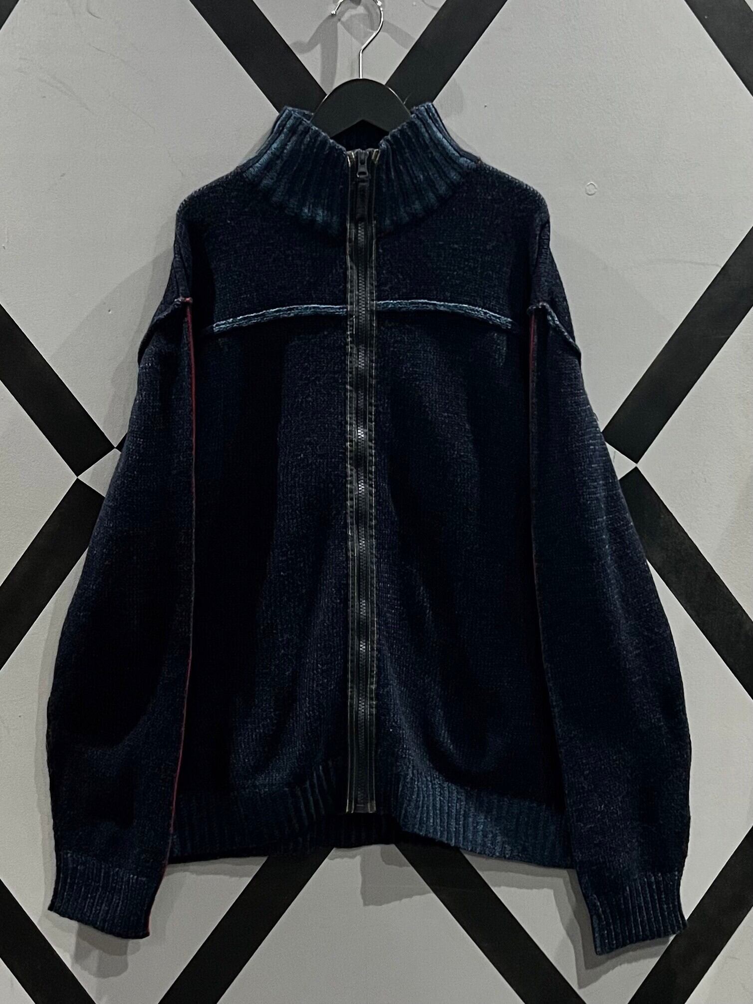 元々はトラックの運転手が着用していたニットが由来で、肉厚のボディにフロントファスナーが付属、防寒性の高い立ち襟仕様に動きを妨げない緩やかで洗練されたシルエットが特徴の一着。