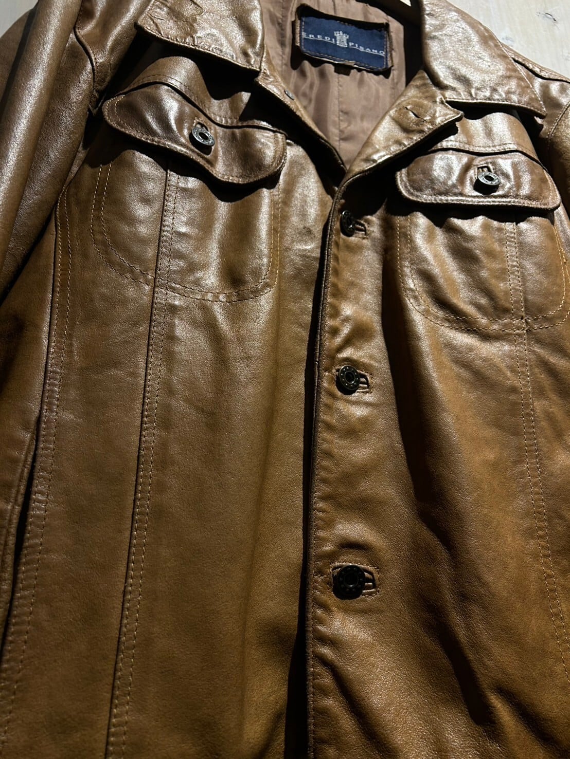 古着では定番かつ王道のトラッカー型をレザーを用いて落とし込んだ稀有な1着です。