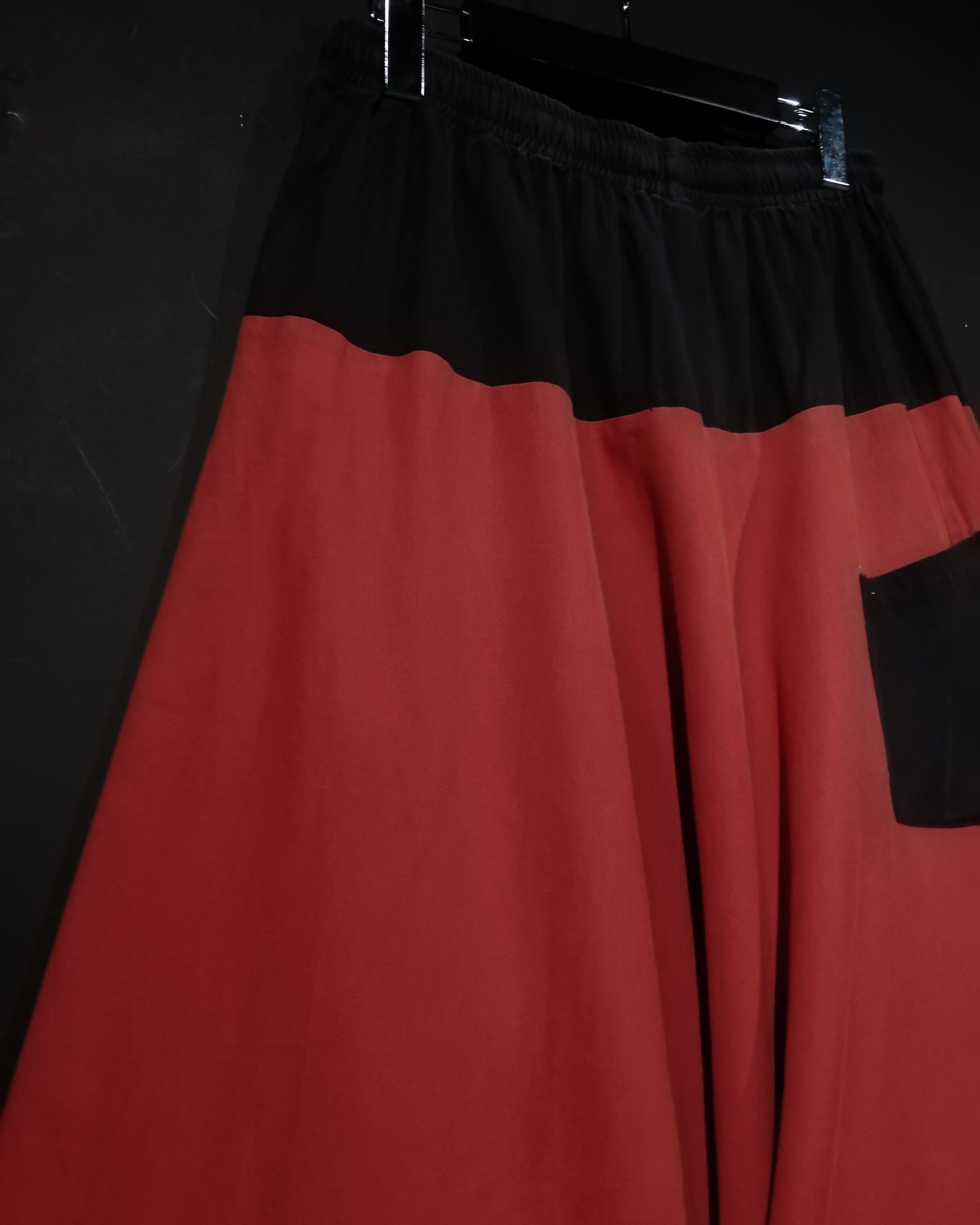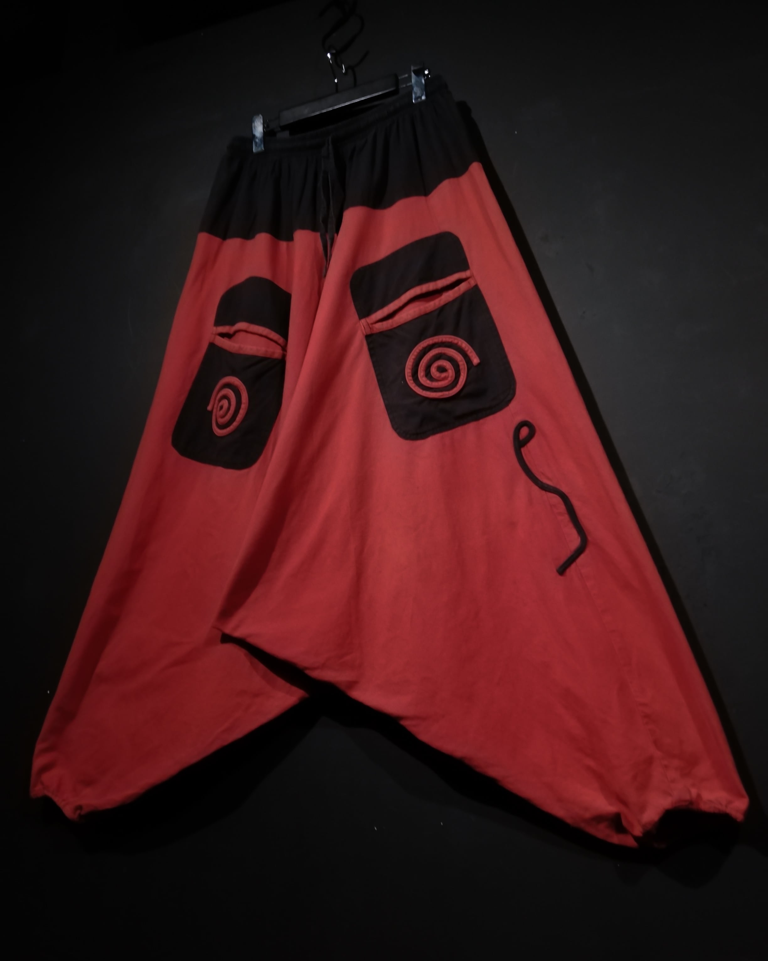コットン特有のフェード感のある赤のボディに、特徴的なポケットに渦巻きのデザインが施された1本。