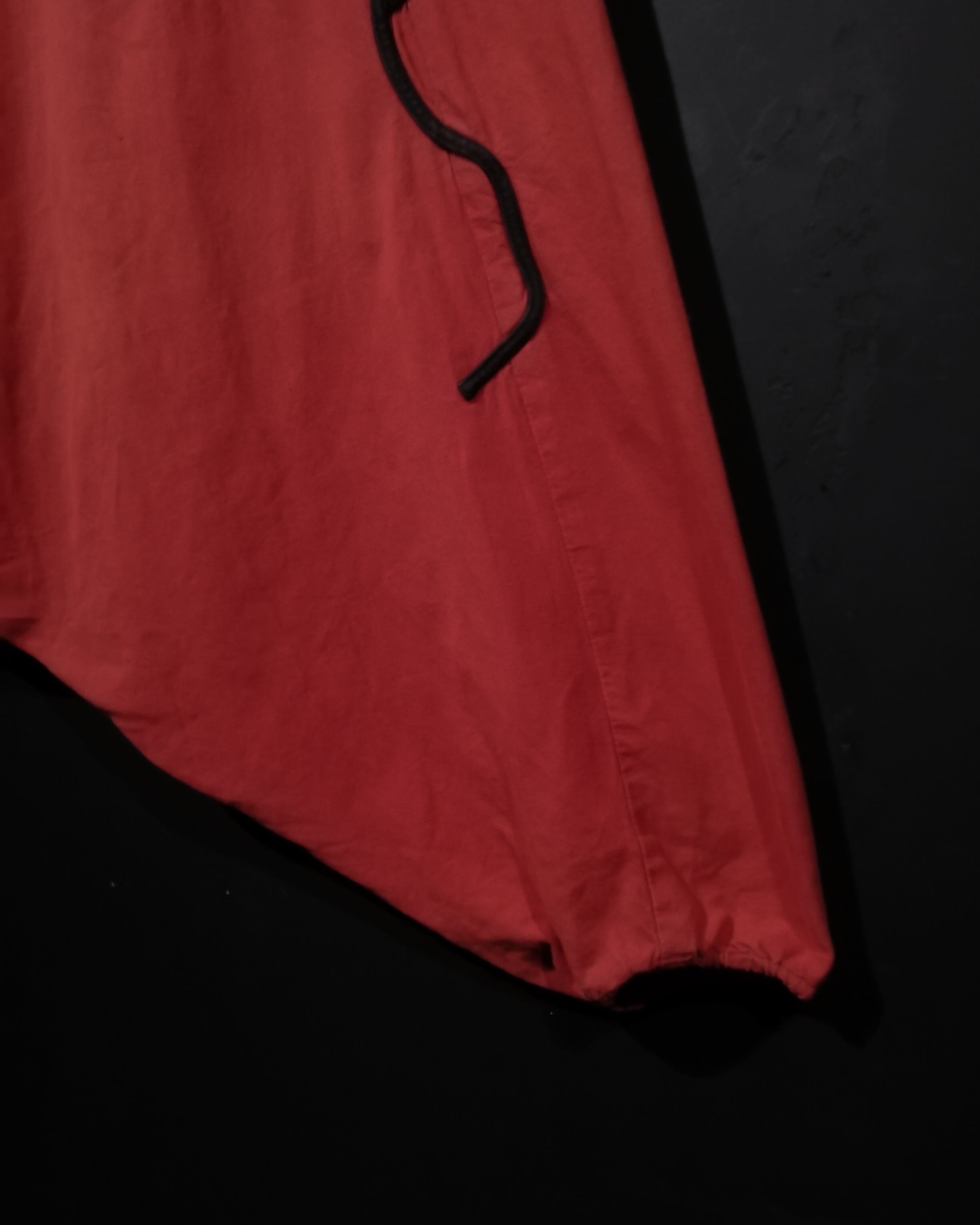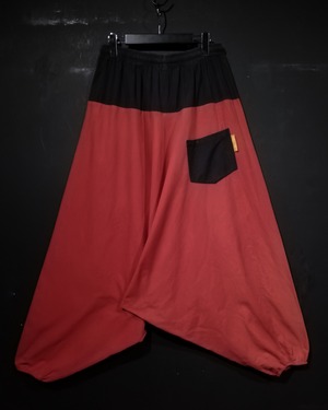 股上が深く採られ、裾口に絞りが効いたラウンド状のサルエルパンツ特有のシルエット。シルエット、デザイン共に存在感を見せ、コーディネートに程よい抜け感や小慣れ感を演出してくれます。