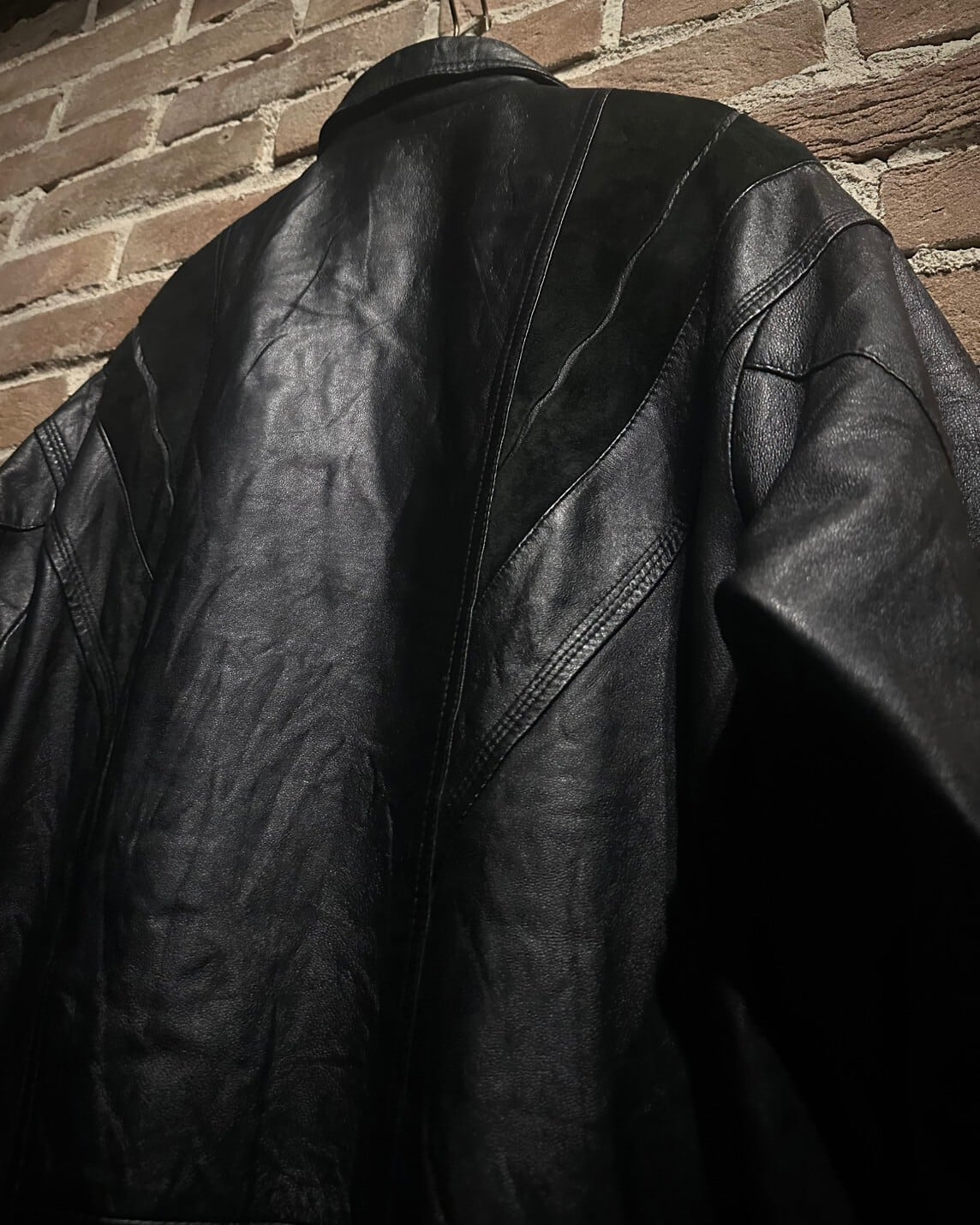 上質なブラックスムースレザーに、異種のスエードレザー切り替えをあしらったスペシャルなレザージャケット。
