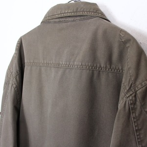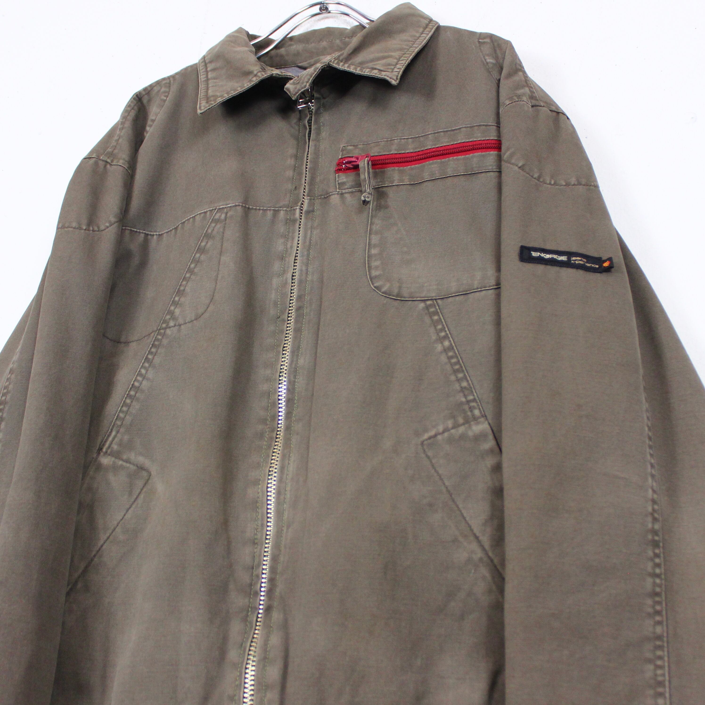 フェード感の良いブラウンのダック地を用いて、ジップポケットのギミックを載せたジップアップジャケット。