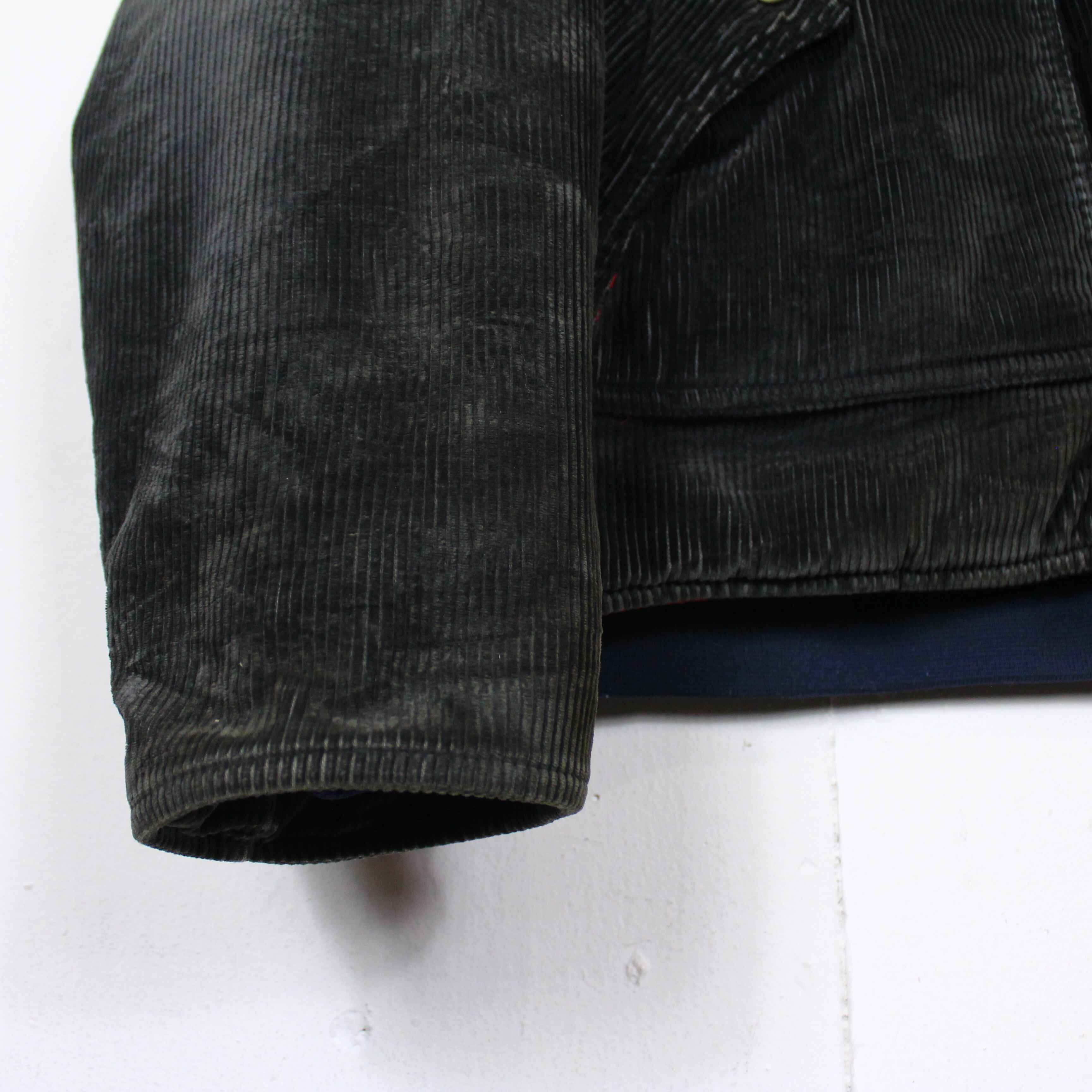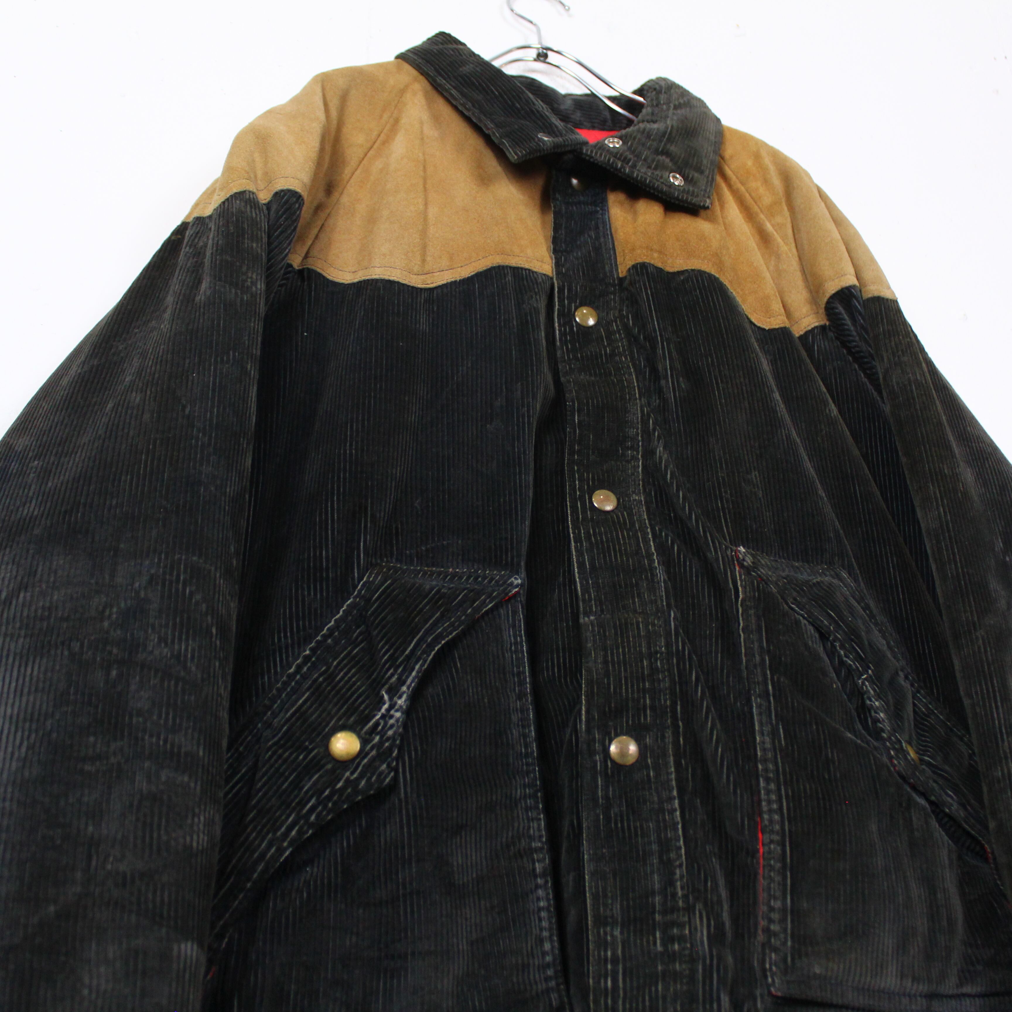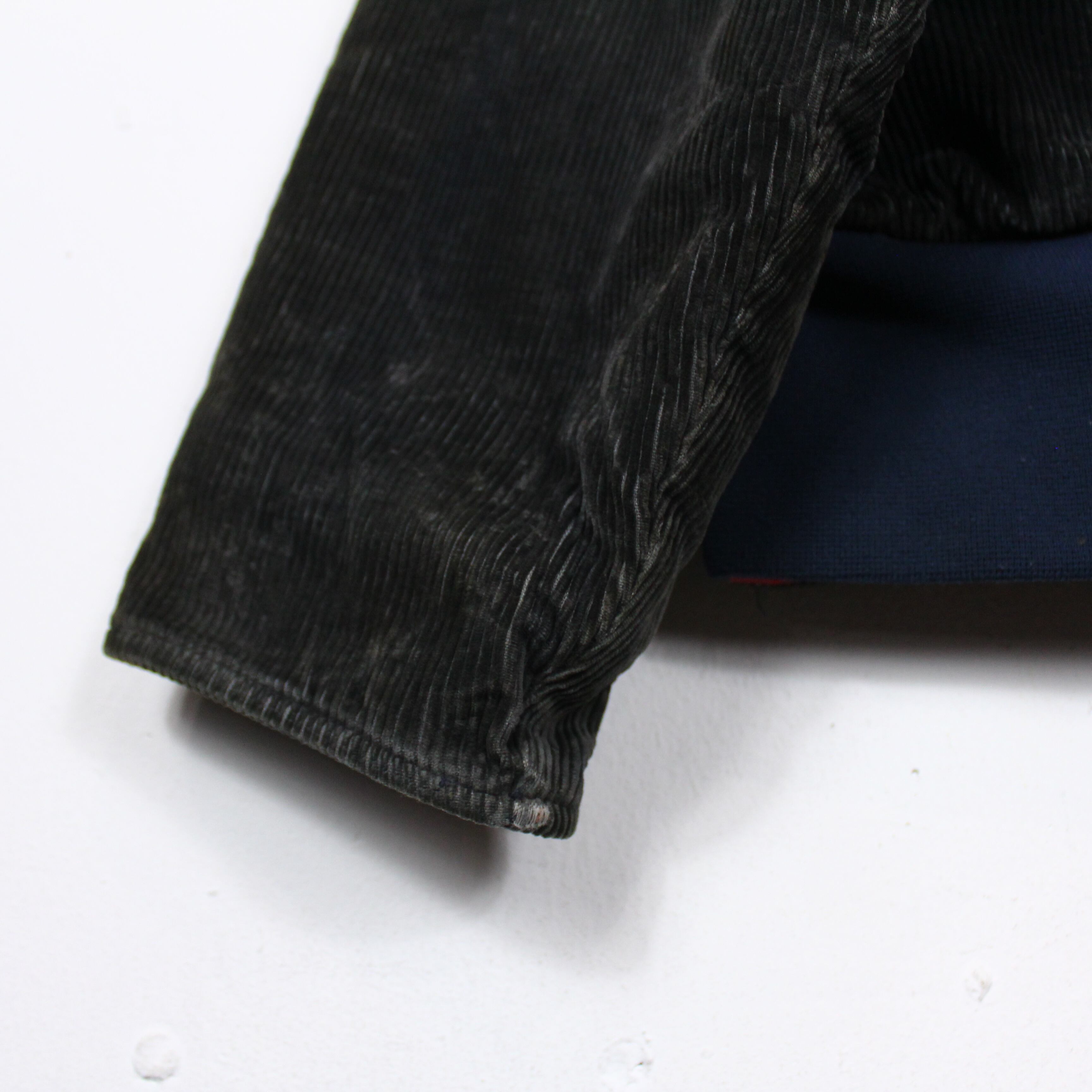 フェード感の良いブラックの太畝コーデュロイを用いたボディに、起毛感のあるスエードレザーを切り替えたジャケット。