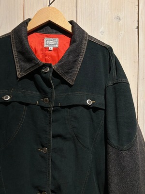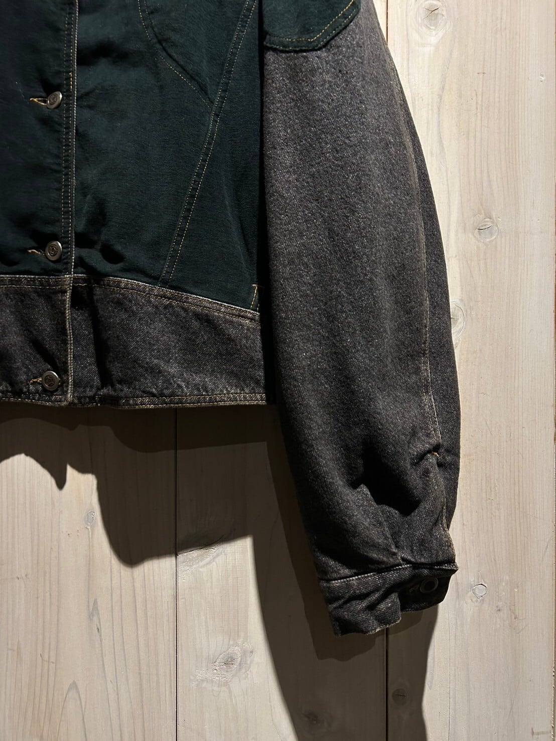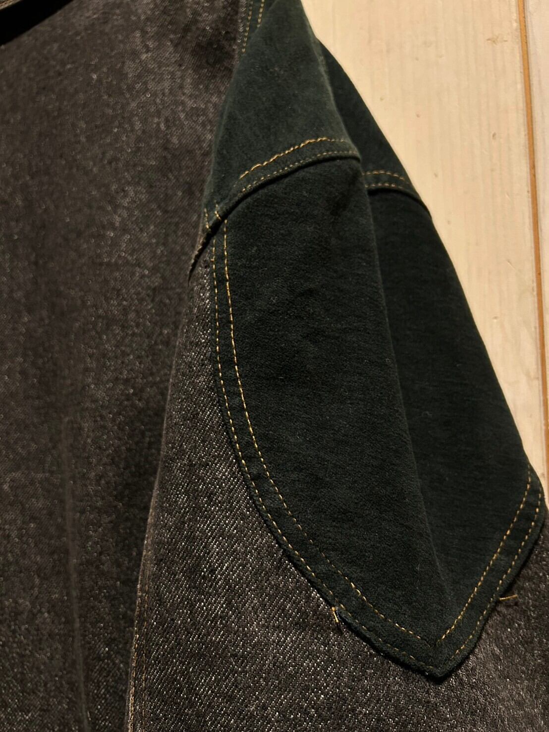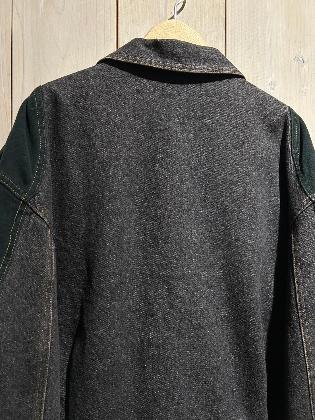 ブラックのデニムをベースに、前身頃から肩にかけて切り替えを施した稀有なデニムジャケット。