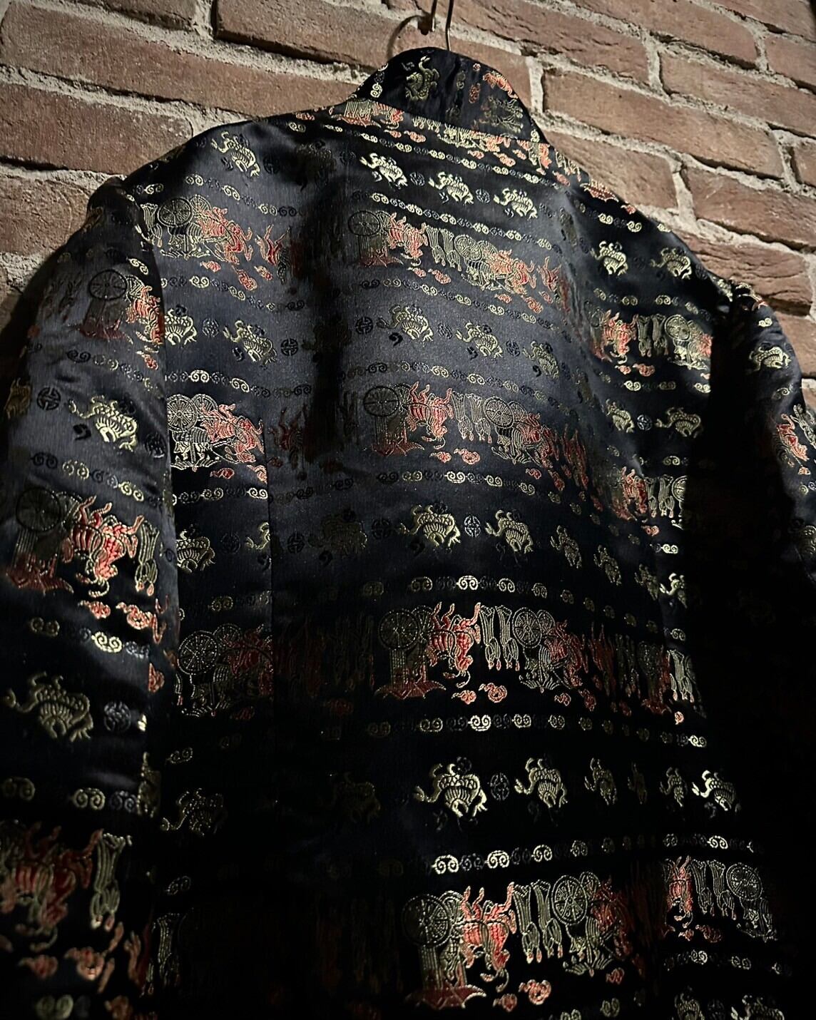 当店独自のフィルターを通して選び抜かれた当店のチャイナアイテムたち。柄のノリ、カラーリング、シルエット等全てにおいて優れた、ラグジュアリーな風合い漂うチャイナジャケットの逸品です。