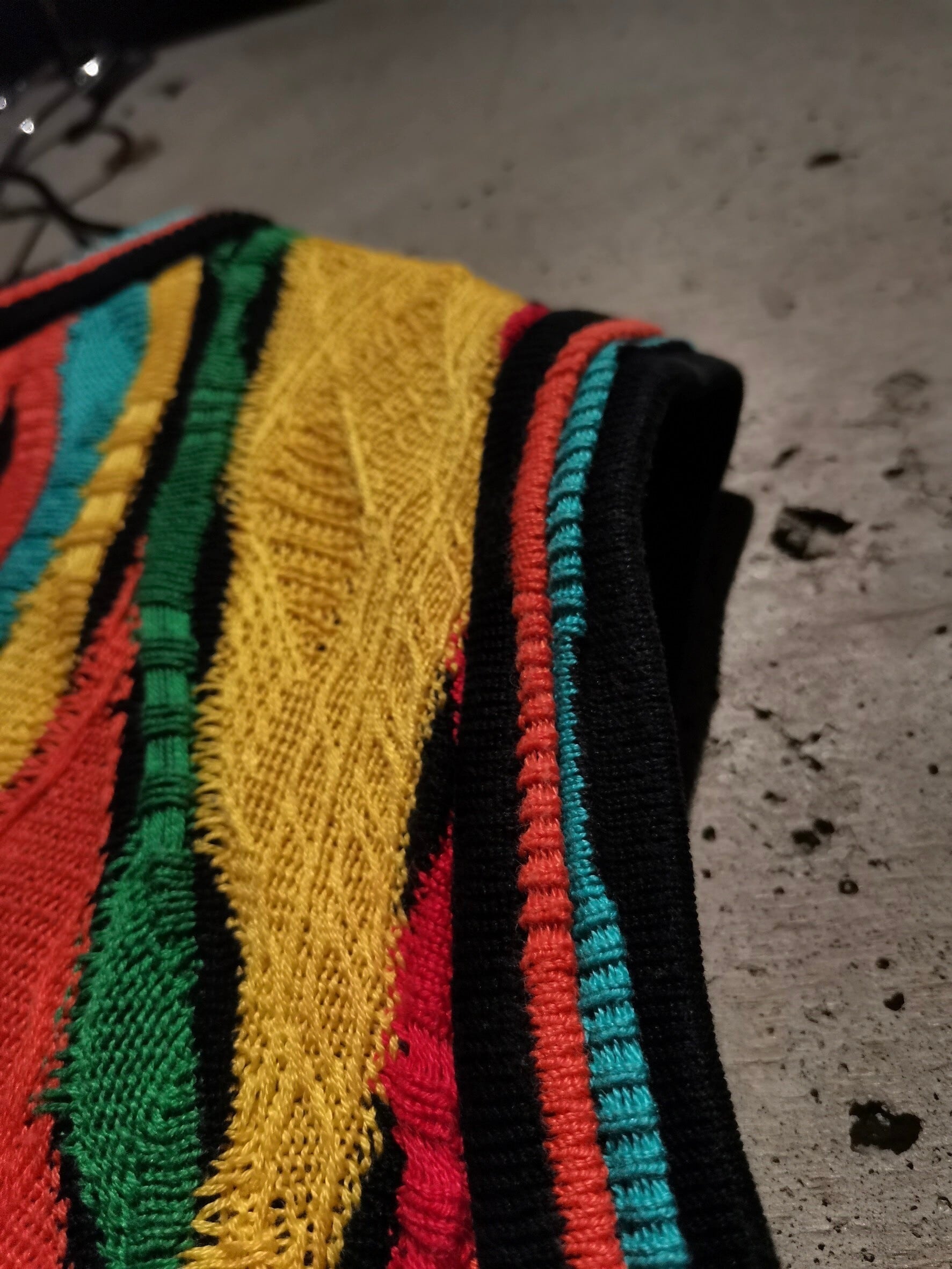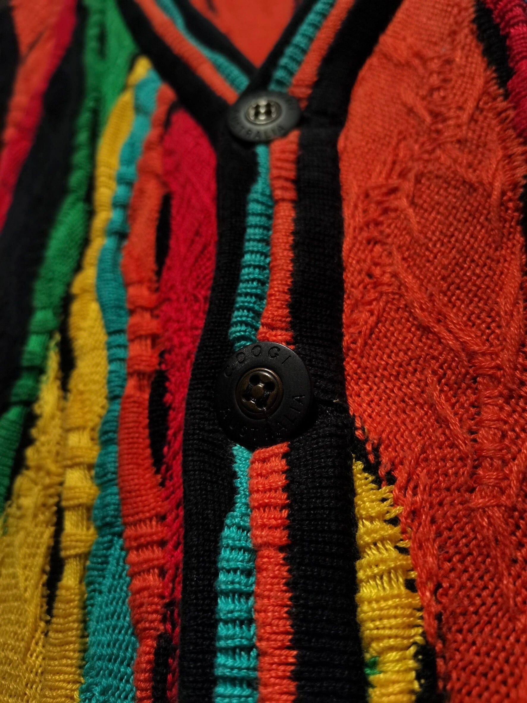 繊細なニッティングから成るクレイジーパターンに、うねりの効いた美しい立体的な見栄えを誇る3Dニットによって生み出された唯一無二の存在感。流石"COOGI"の一言に尽きます…