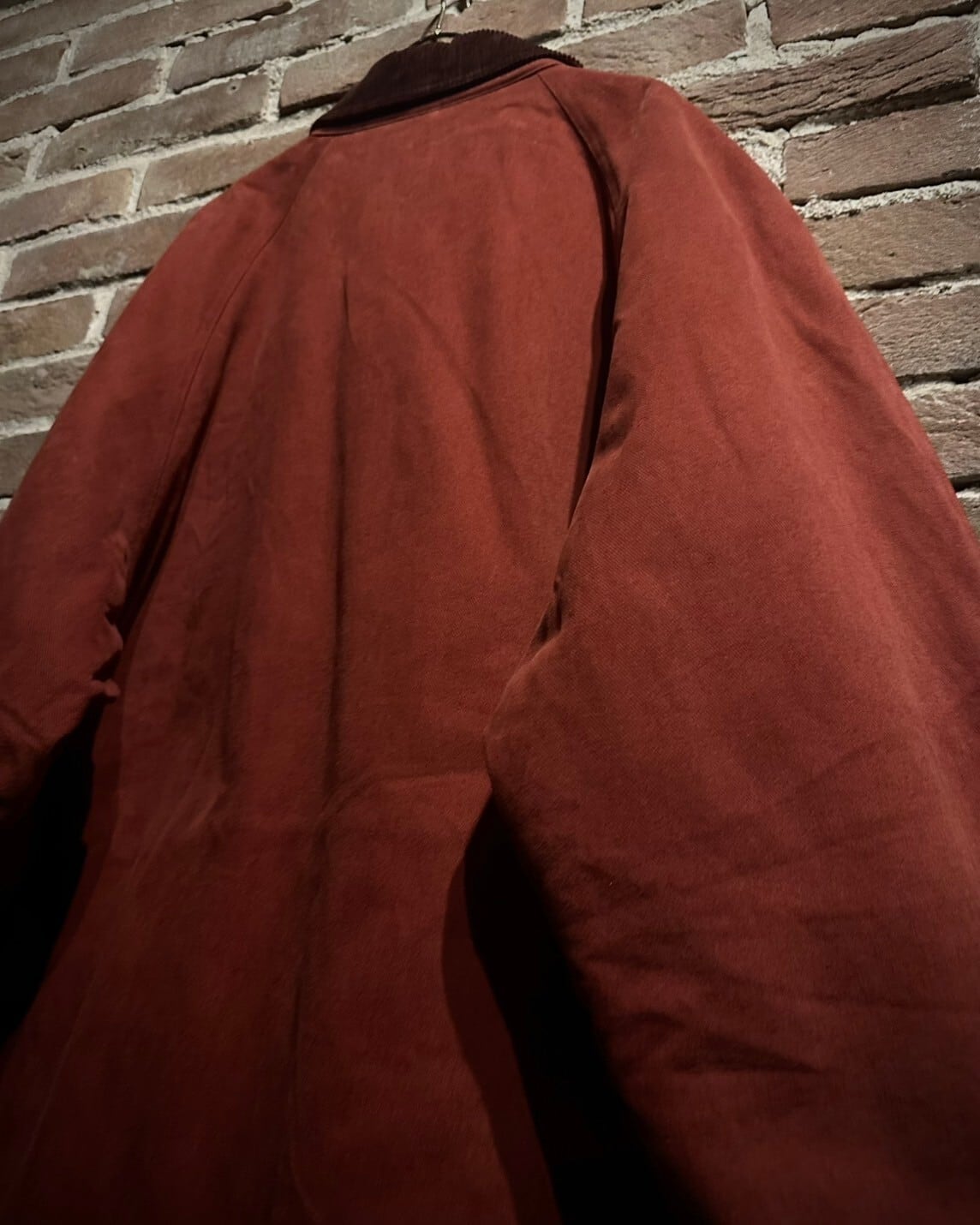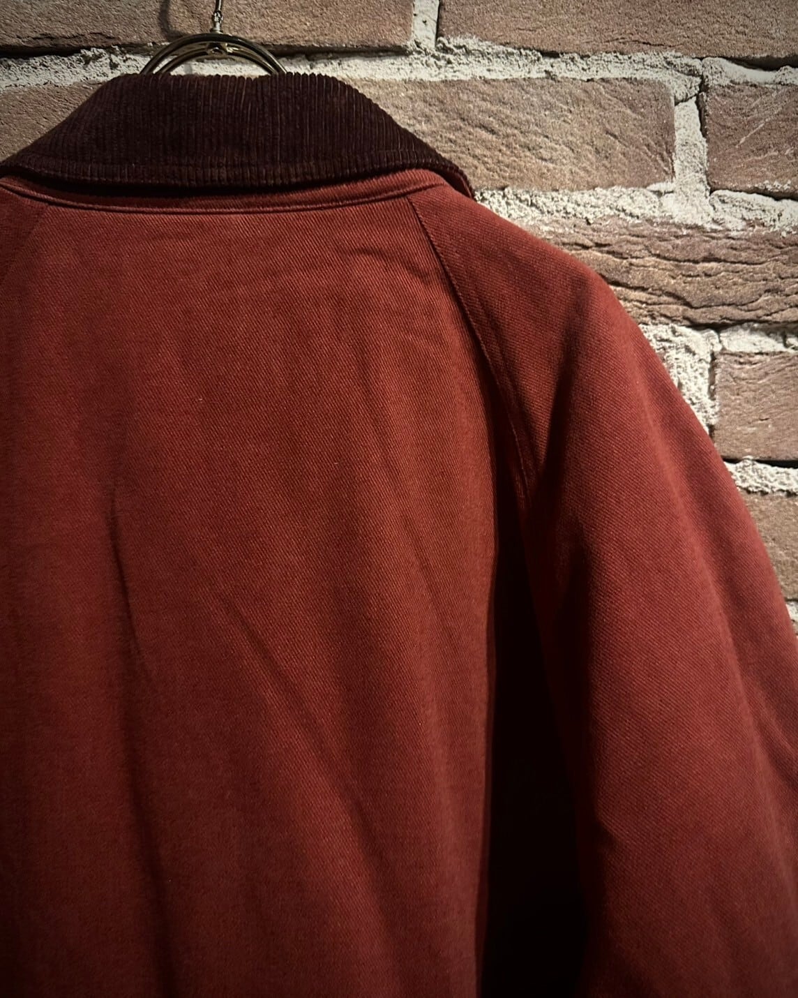 細やかなディテールも素晴らしく、フロントのバスケットボタンのアクセントに、摩耗に耐えられるように首にはコーデュロイ素材を切り替え。