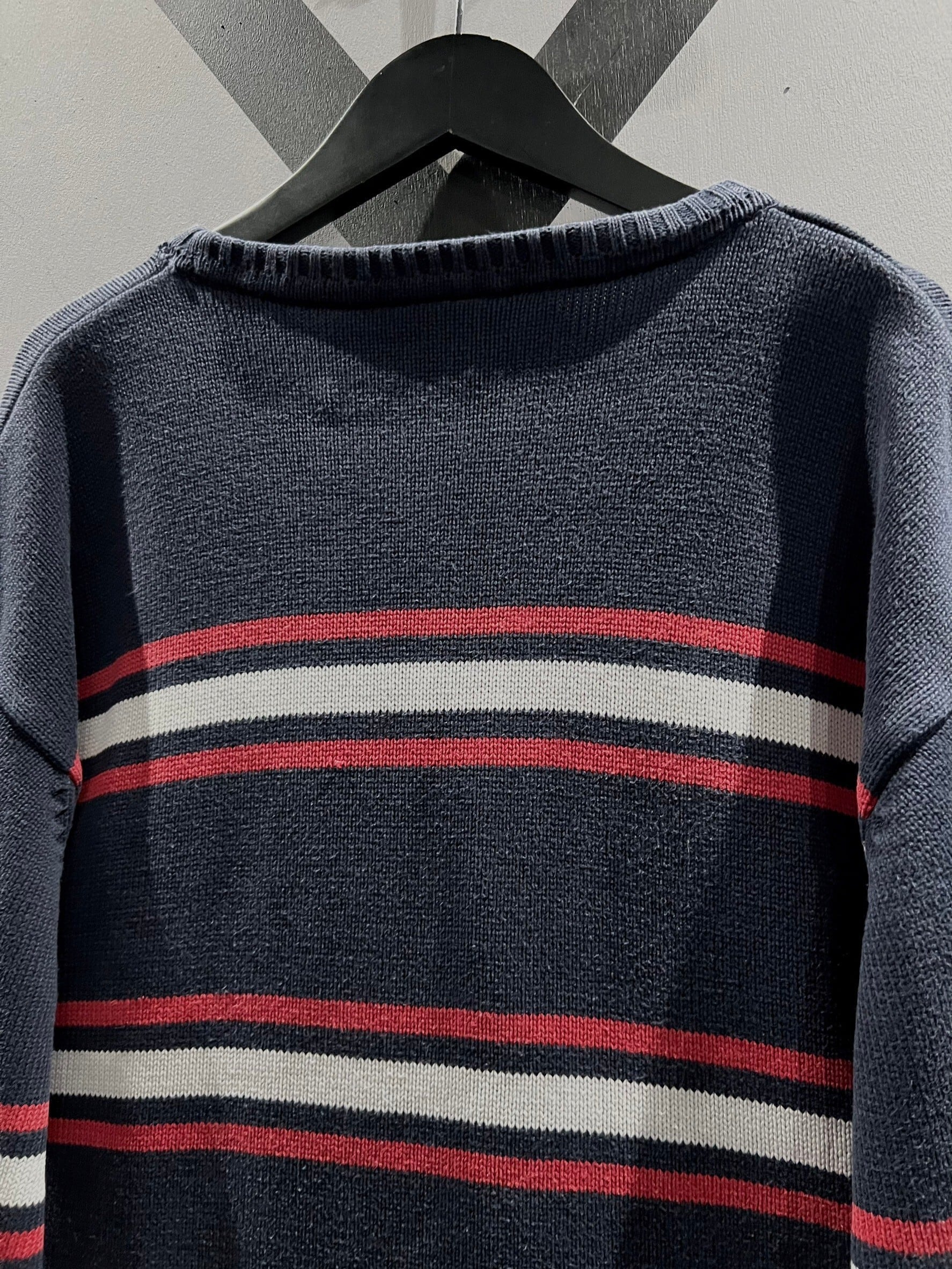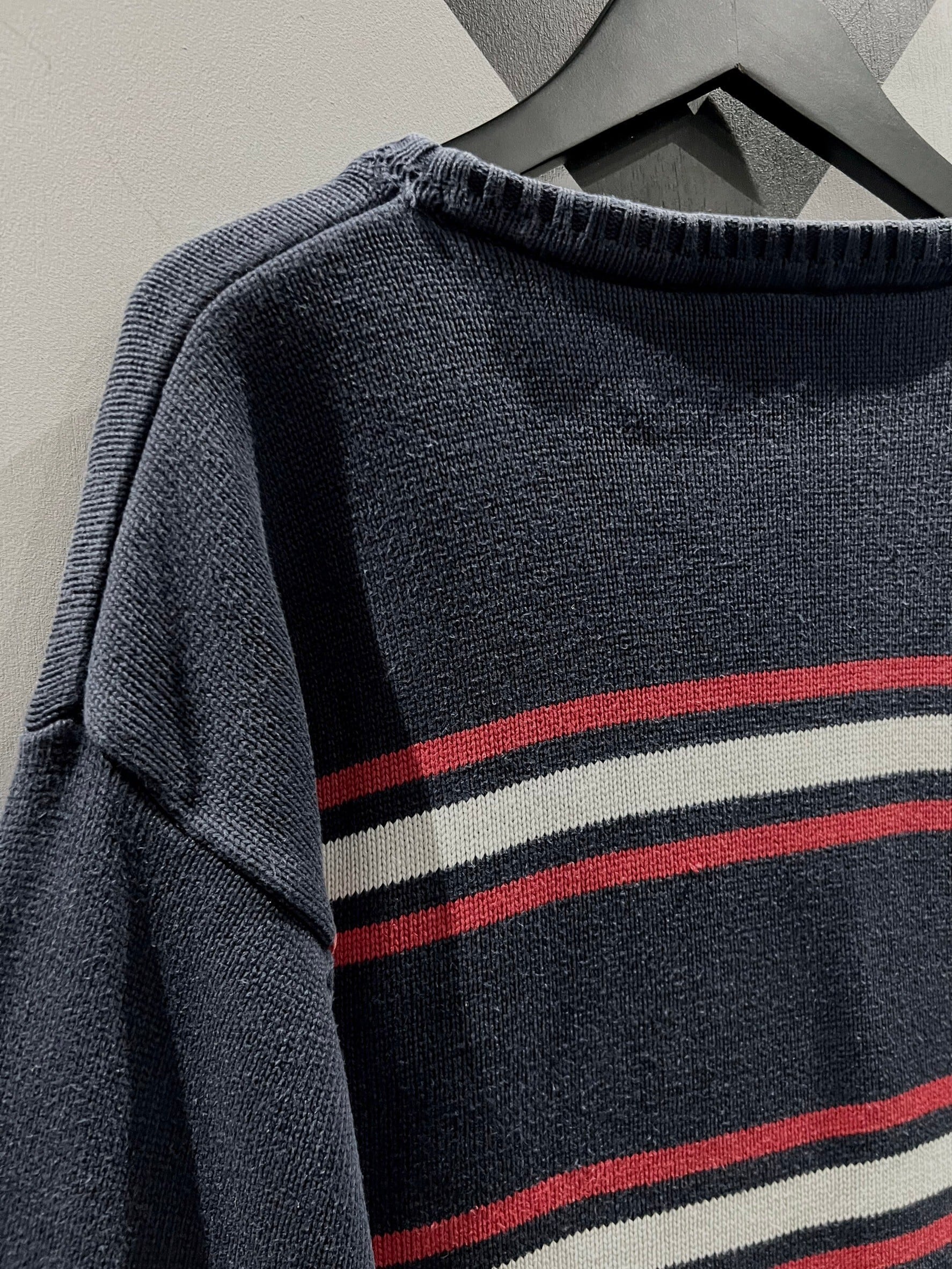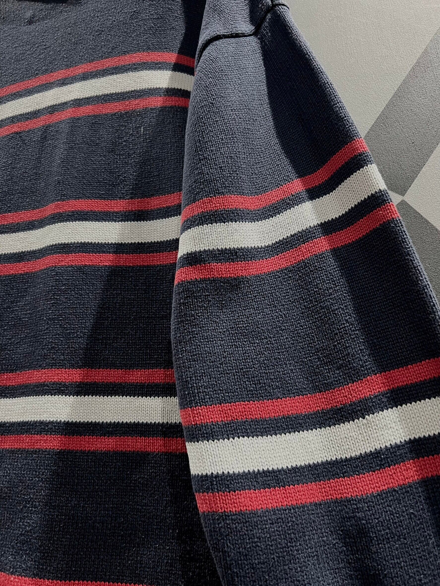 トラックジャケットやゲームシャツも良いけれど、変化球かつ稀有なニットの1着。ノリの良いボーダーにコンディション、サイジングを兼ね備えた逸品です。