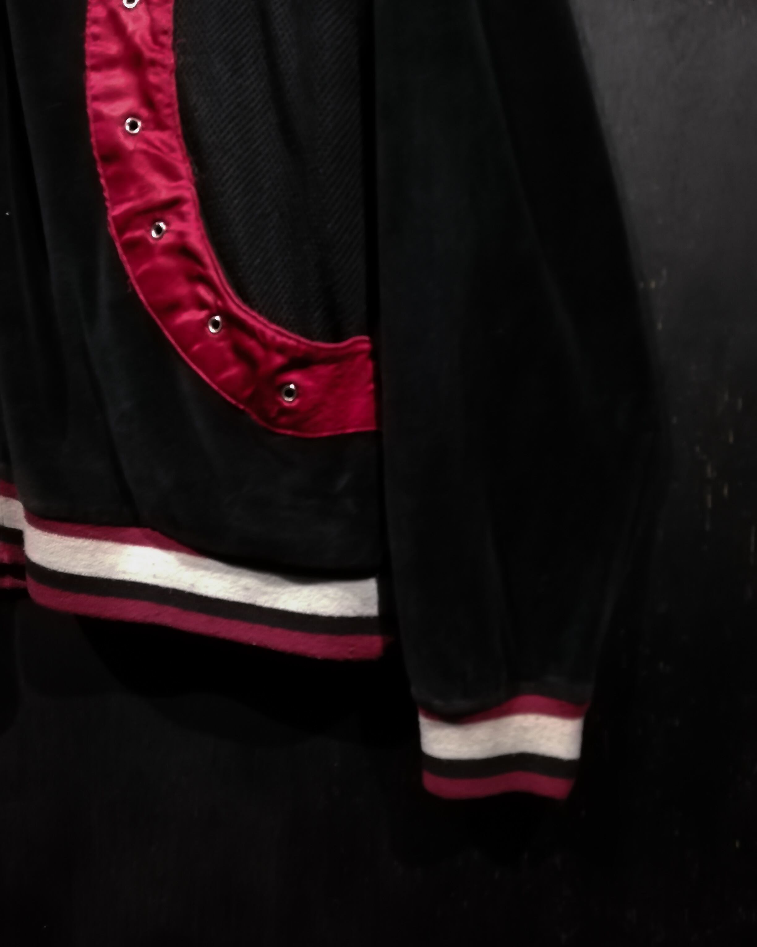 鈍い光沢を放つベロア素材がストリートノリなテンション感に見事にマッチ。どこかラグジュアリーな雰囲気も漂う、デザインバランスに秀でた1着です。