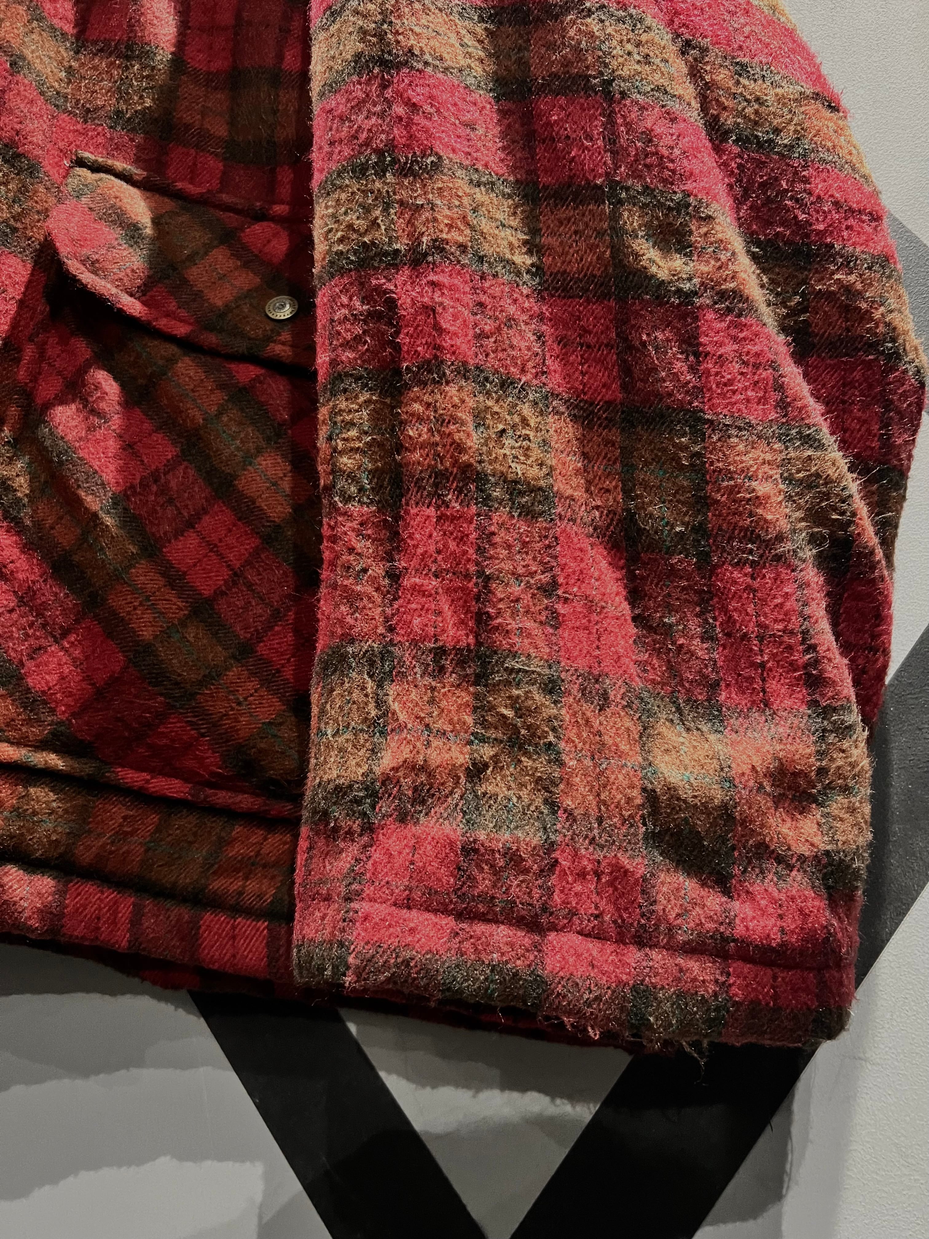 フワッと柔らかく肌触りの優しいウール素材を用い、赤ベースのタータンチェックを載せたウールジャケット。