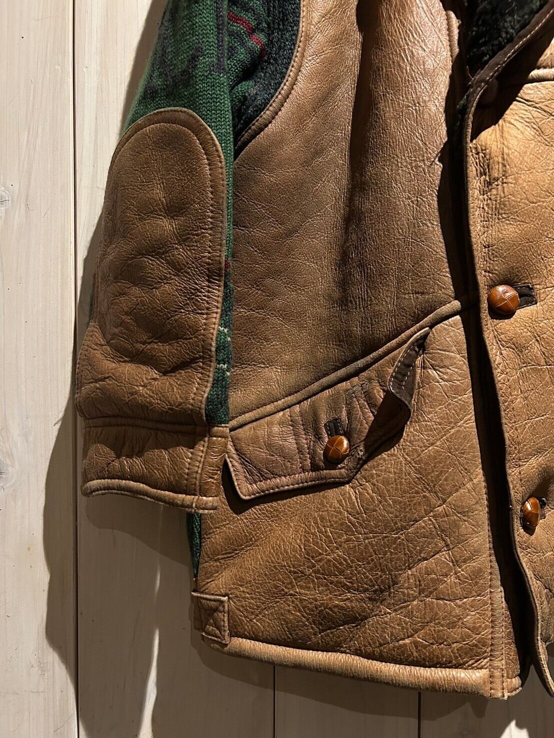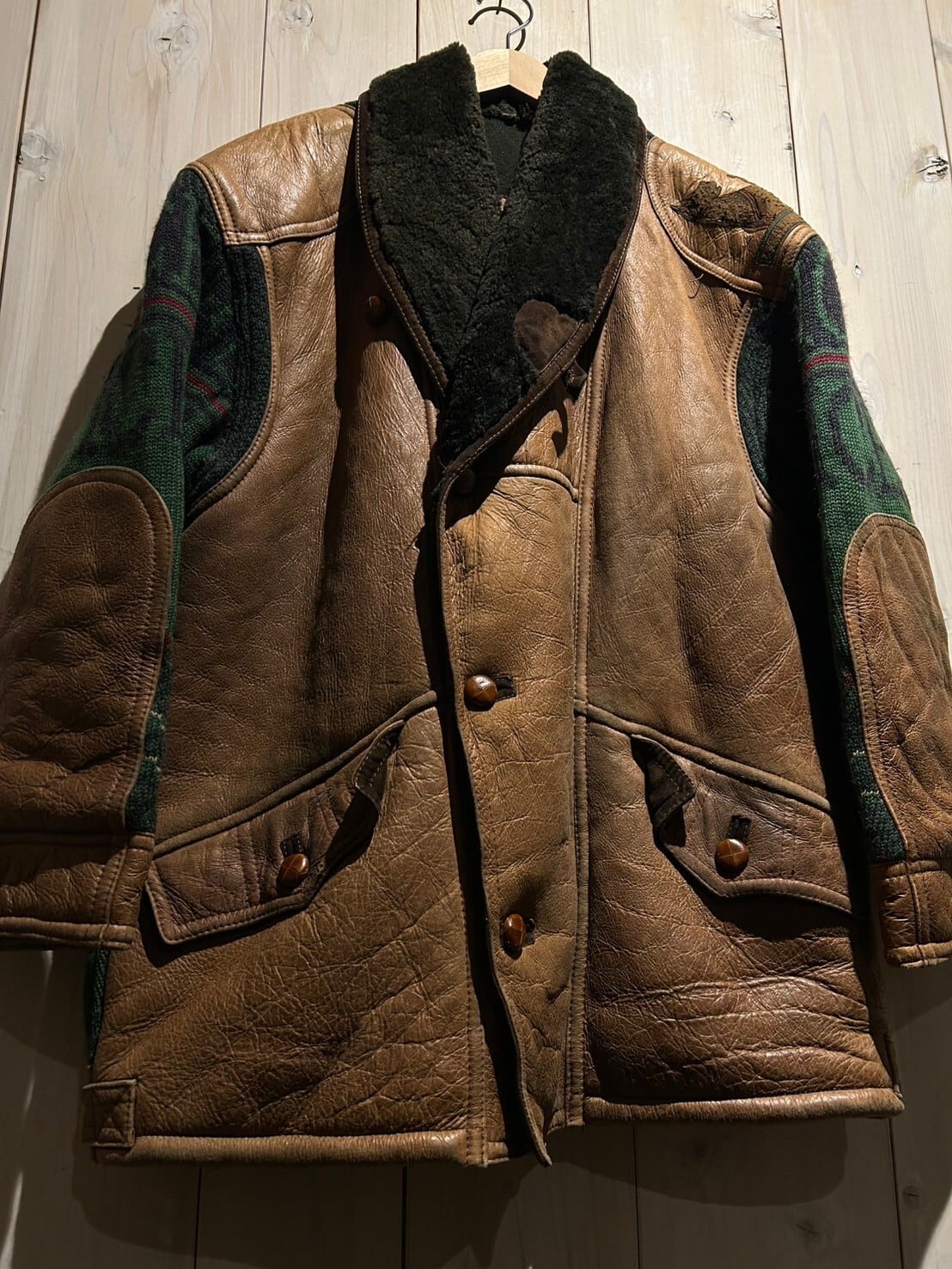 ブランド創業当初からの強みであるニッティング技術を駆使したニットのボディに、モフッと肉厚なムートンレザーを切り替えたジャケット。