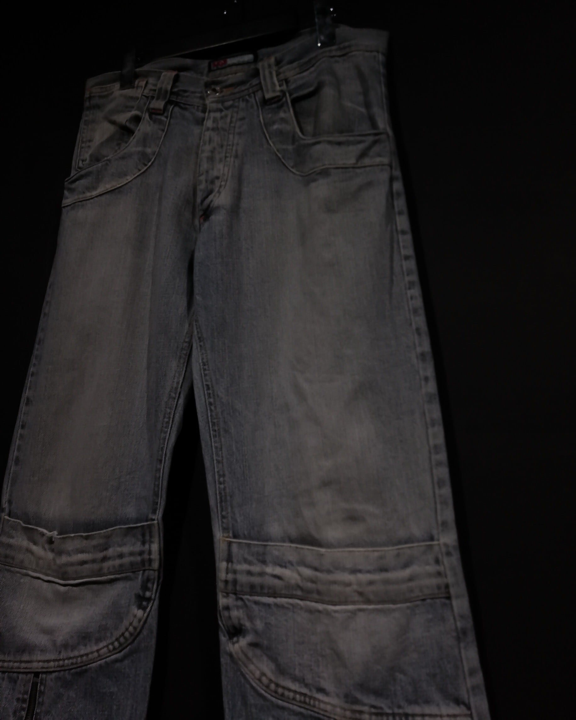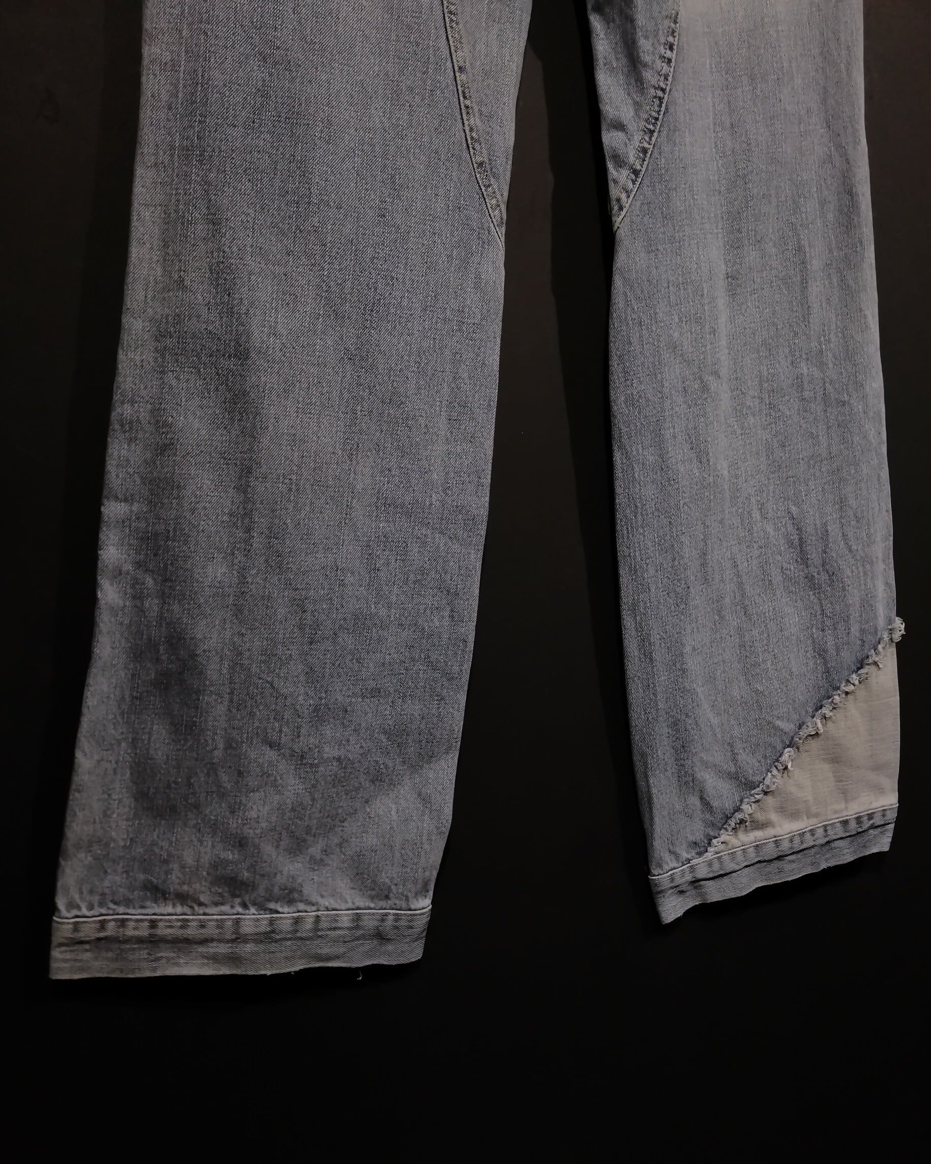 フェードの効いたライトインディゴのデニムをボディに使用し、随所に様々なデザインを載せたデニムパンツ。