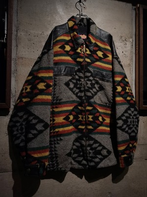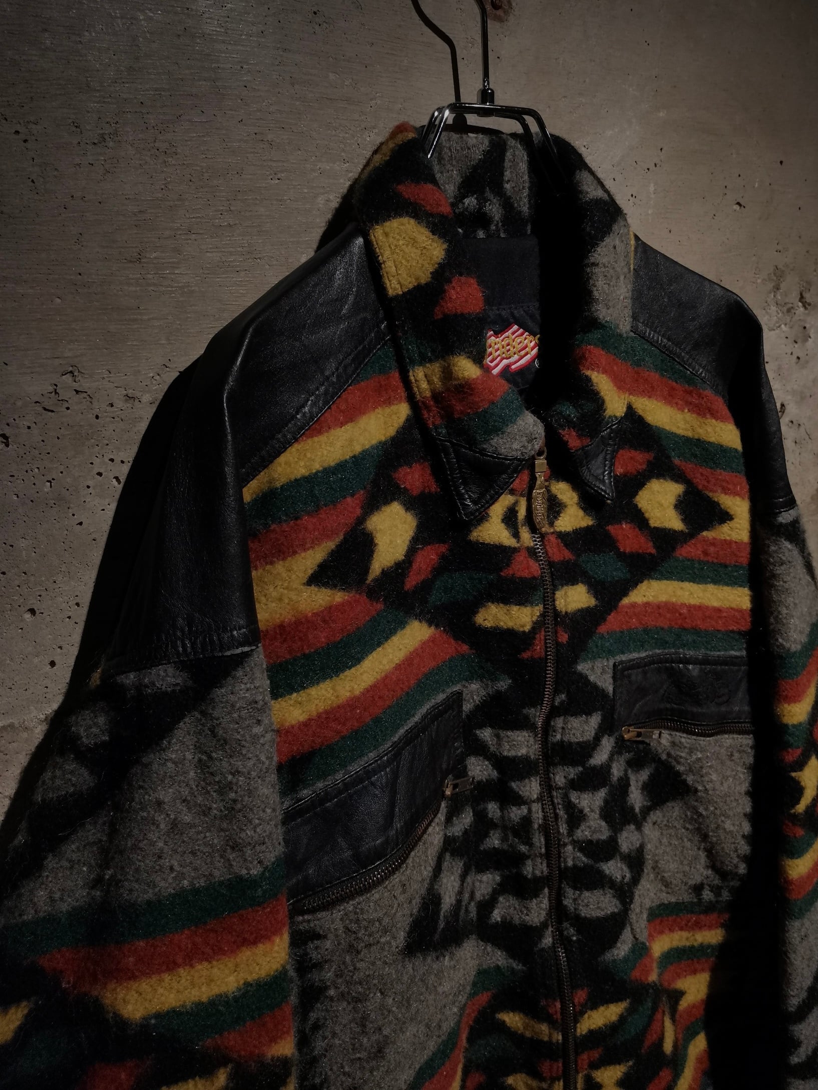柔らかなウール生地に、ラスタカラーでラインやネイティブ調のデザインを載せたジップアップウールジャケット。