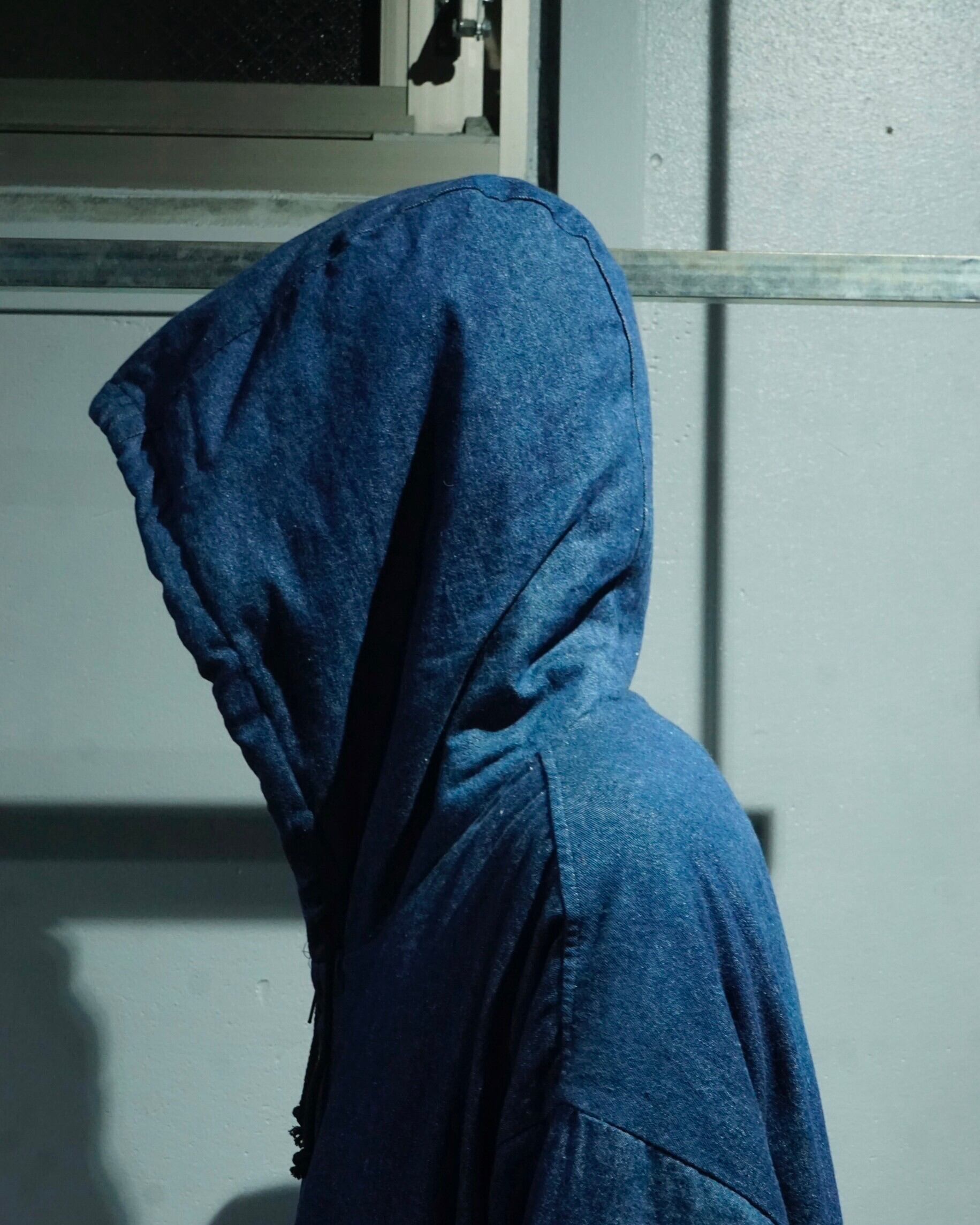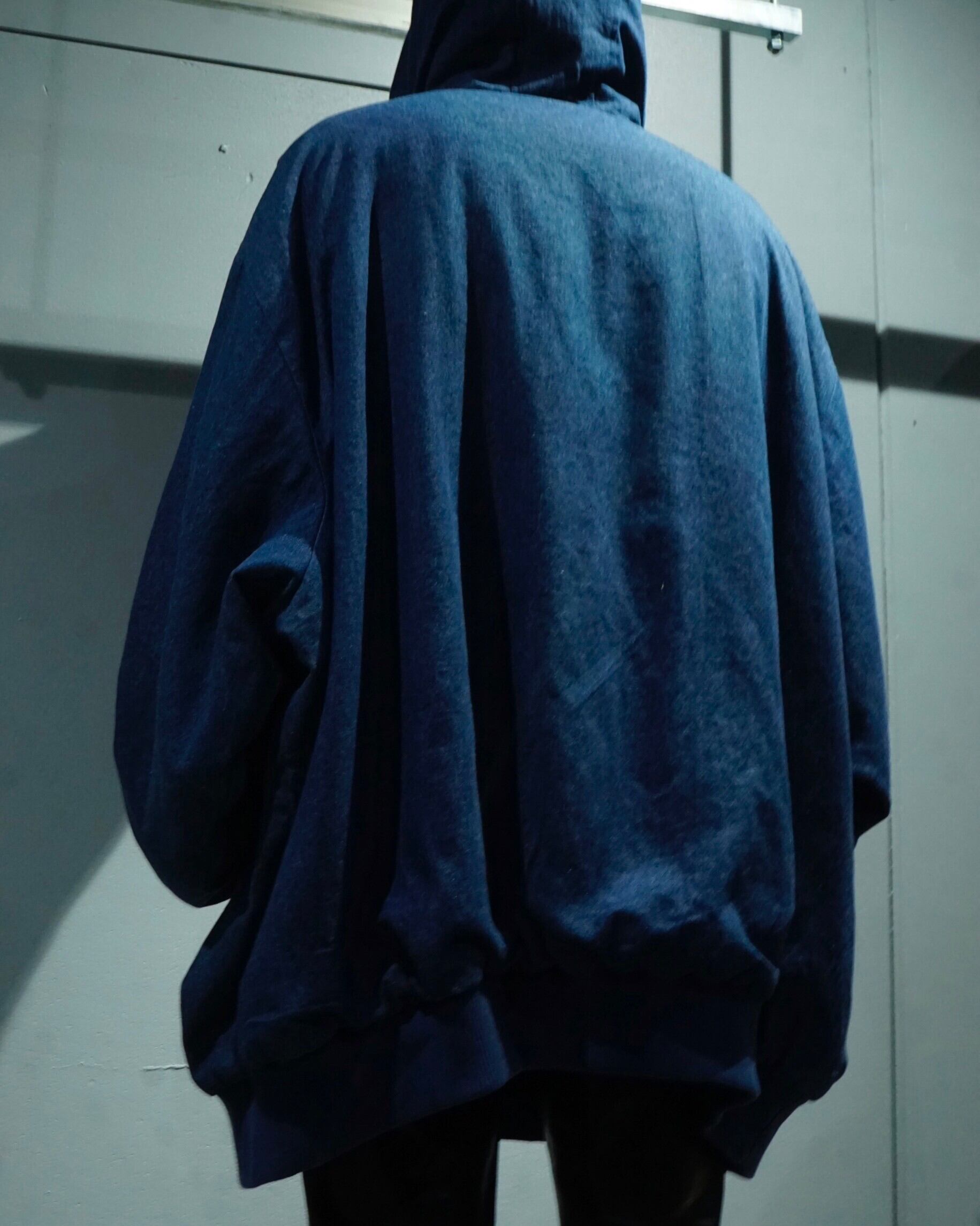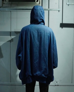 コシ、柔らかさを兼ね備えたインディゴブルーのデニムを用いたジップアップデニムフーディ。