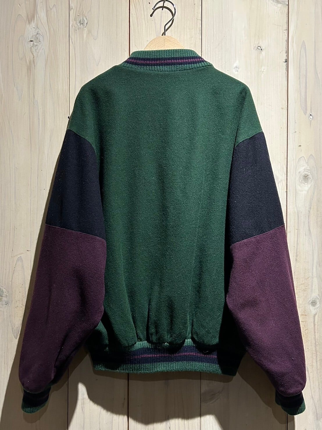 柔らかく上質なウール素材を使用し、グリーンのボディをベースに、黒、紫を切り替えたウールブルゾンジャケット。左胸には、アイコニックなラコステワニのパッチを施したブランドらしさも併せ持った1着です。