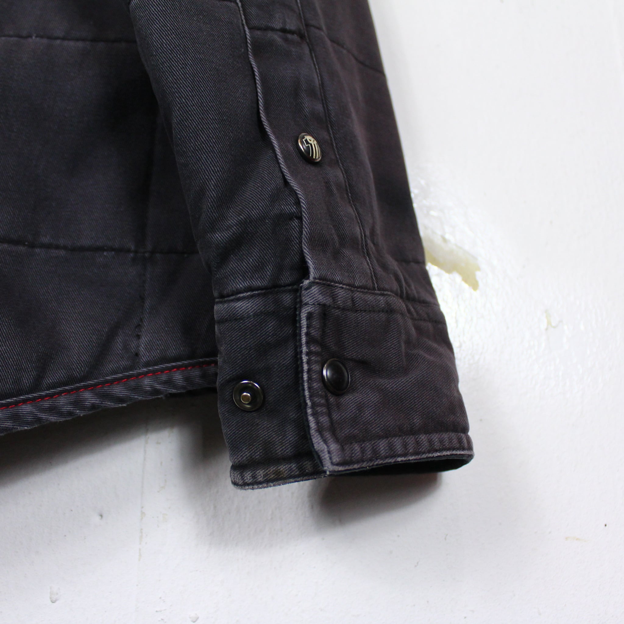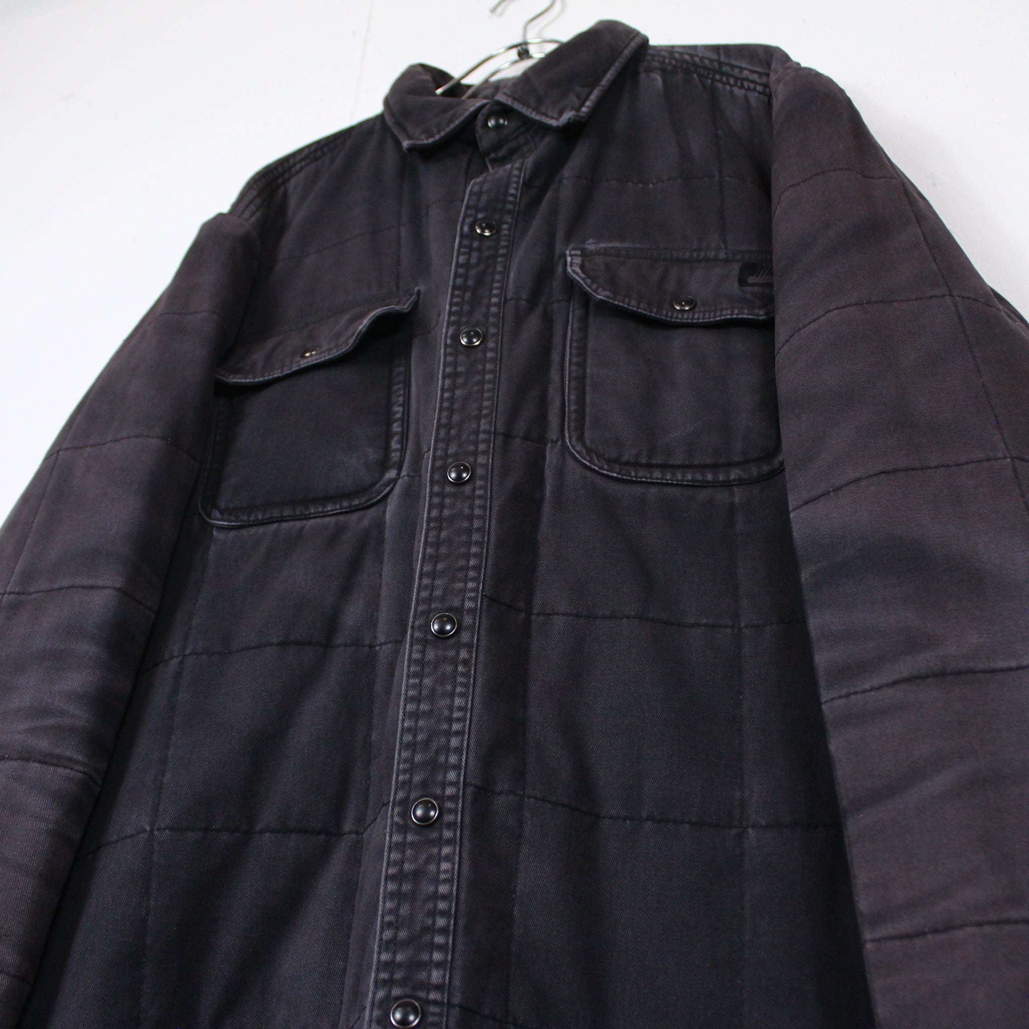 この手の素材のアイテムでは珍しい中綿入りのパデット仕様。シャツ型での羽織りやすい形ながら暖かい、これからの季節には嬉しい1着となっております。
