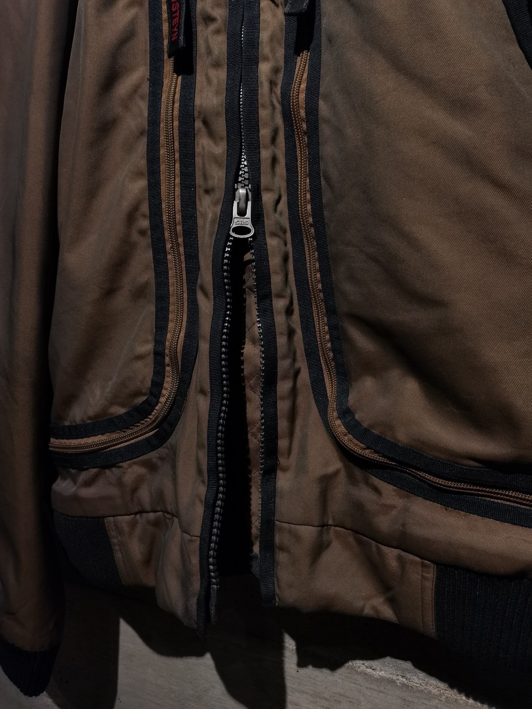 アームや肩のステッチワークやアームに備わったジップのポケット、そしてレザーの切り替え等、細部までディテールに拘り抜かれた、非常に高い完成度を誇る逸品。