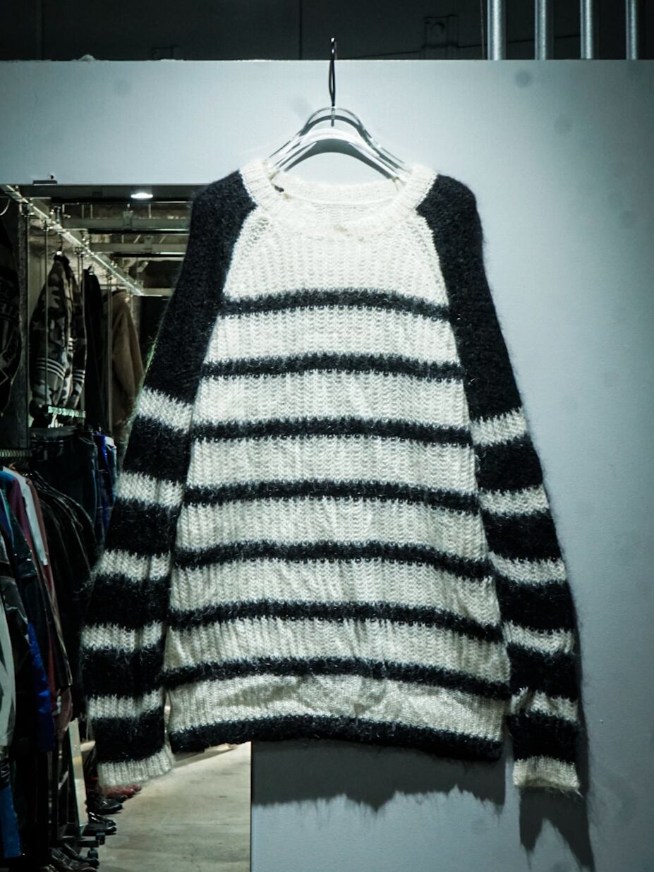 モヘア×ナイロン×ウールの柔らかなボディに、モノトーンのボーダーを載せた1着。