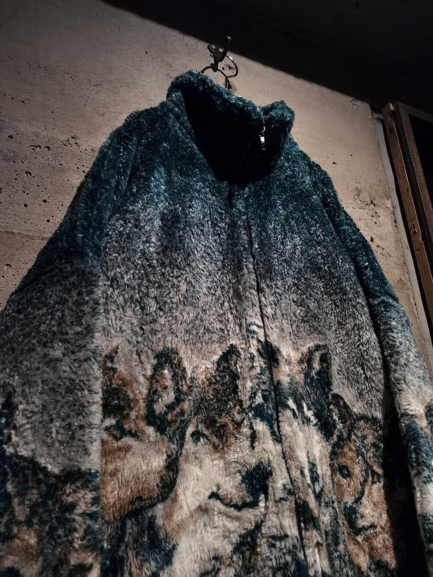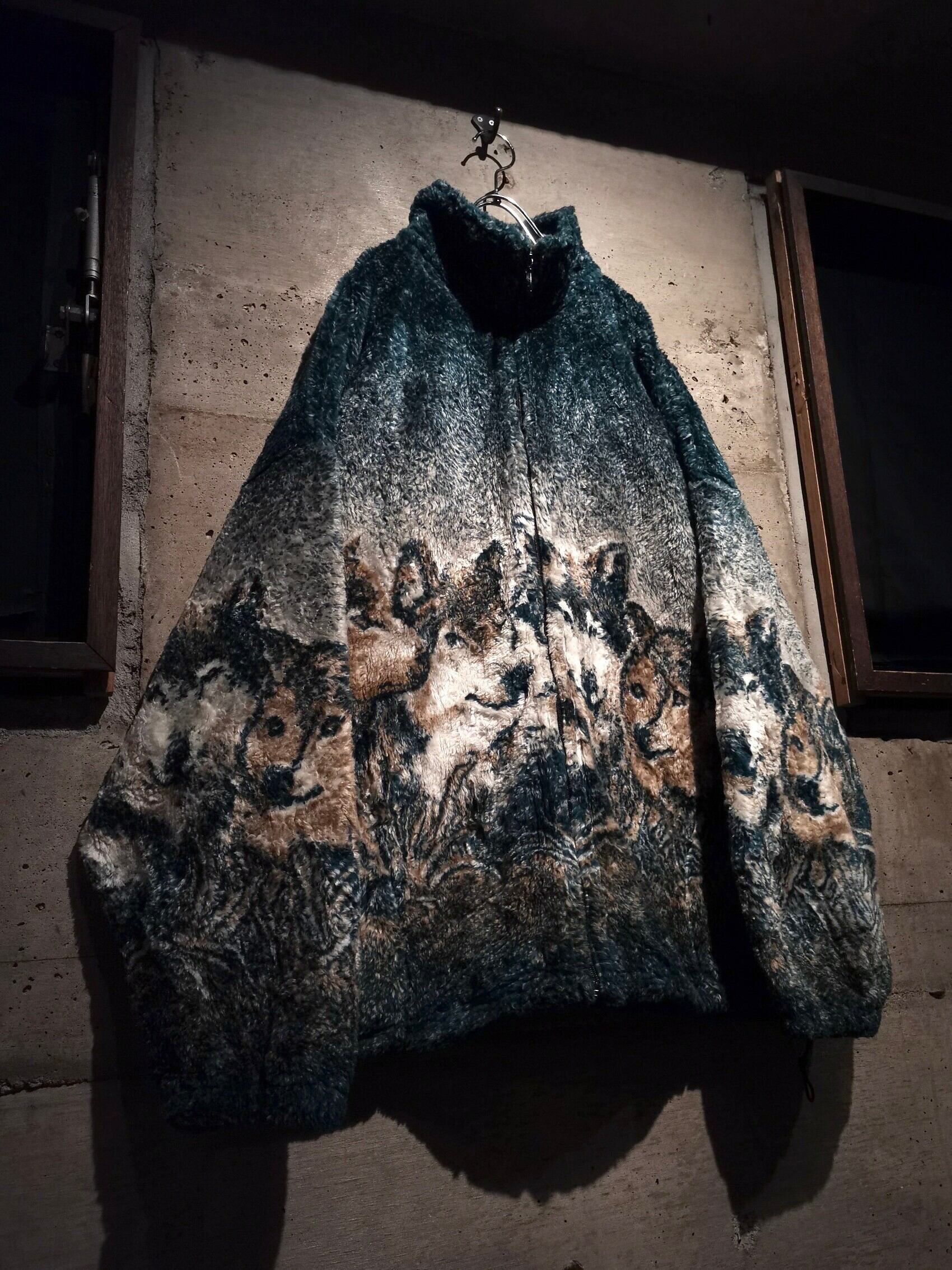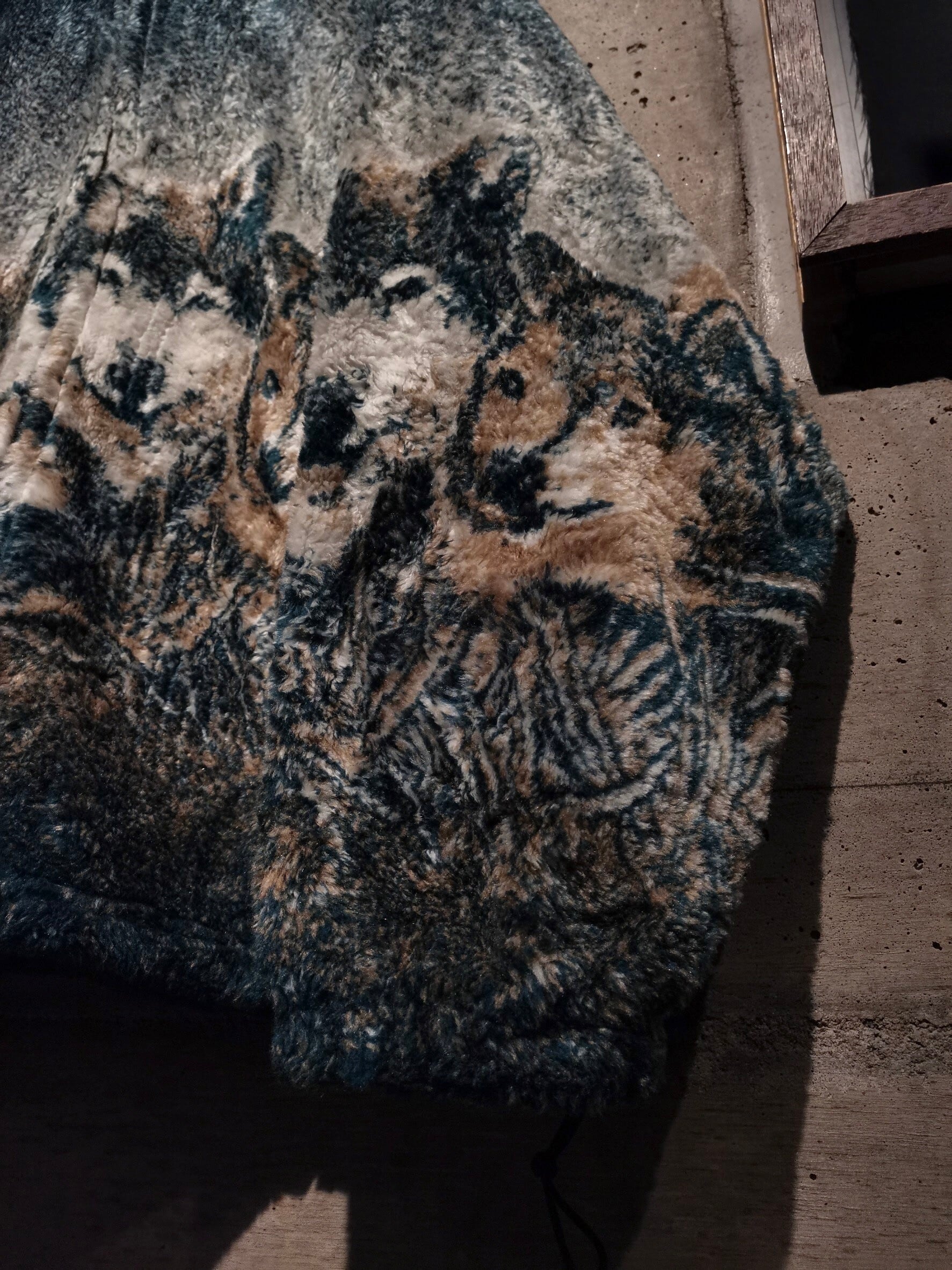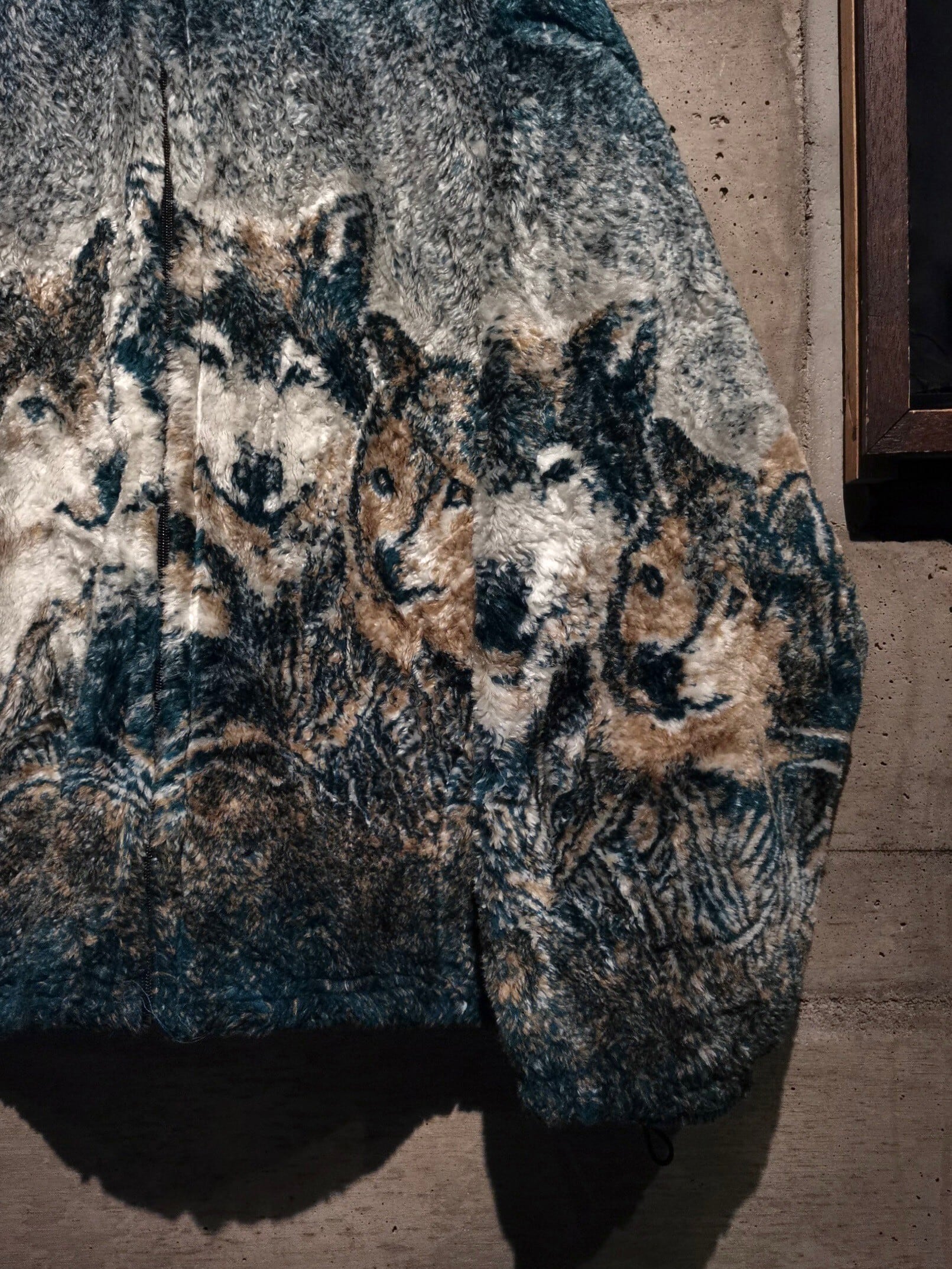 フワッと心地の良い軽く柔らかな毛足のボディに、フロント、バック、そしてアームまでにもオオカミを配した全方位抜かりのないフリースジャケットの逸品。