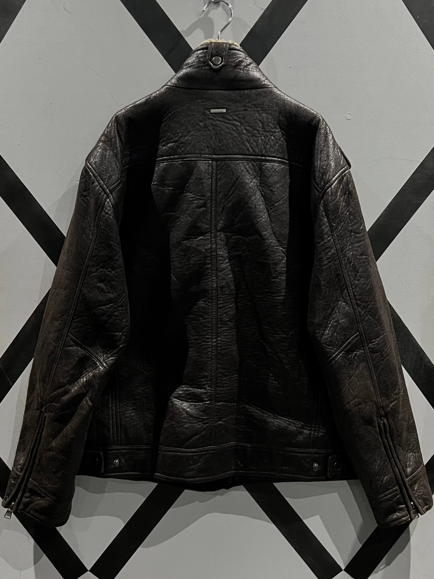 ハリを持ちながらもしっとりと柔らかな質感に仕上げられたフェイクムートンを使用し、非常に深いダークブラウンカラーにまとめあげたムートンジャケット。