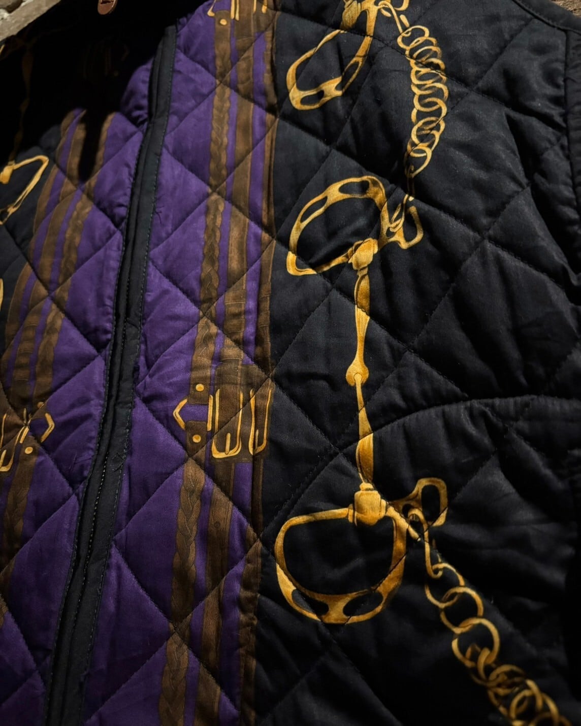 フワッと柔らかいキルティング素材に、エルメス等のラグジュアリーブランドのアイコンとしても用いられる"馬具"をモチーフに載せた逸品。