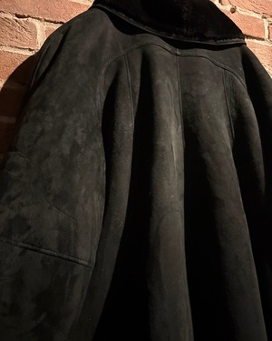 フェイクファーは首周りの保温性を高め、腰まで隠れるミドルの縦にストンと落ちる美しいIライン。ドルマンスリーブの袖作りの変則的なシルエットも素晴らしい。古着の域を超えたラグジュアリーな雰囲気をムンムンに漂わせます。