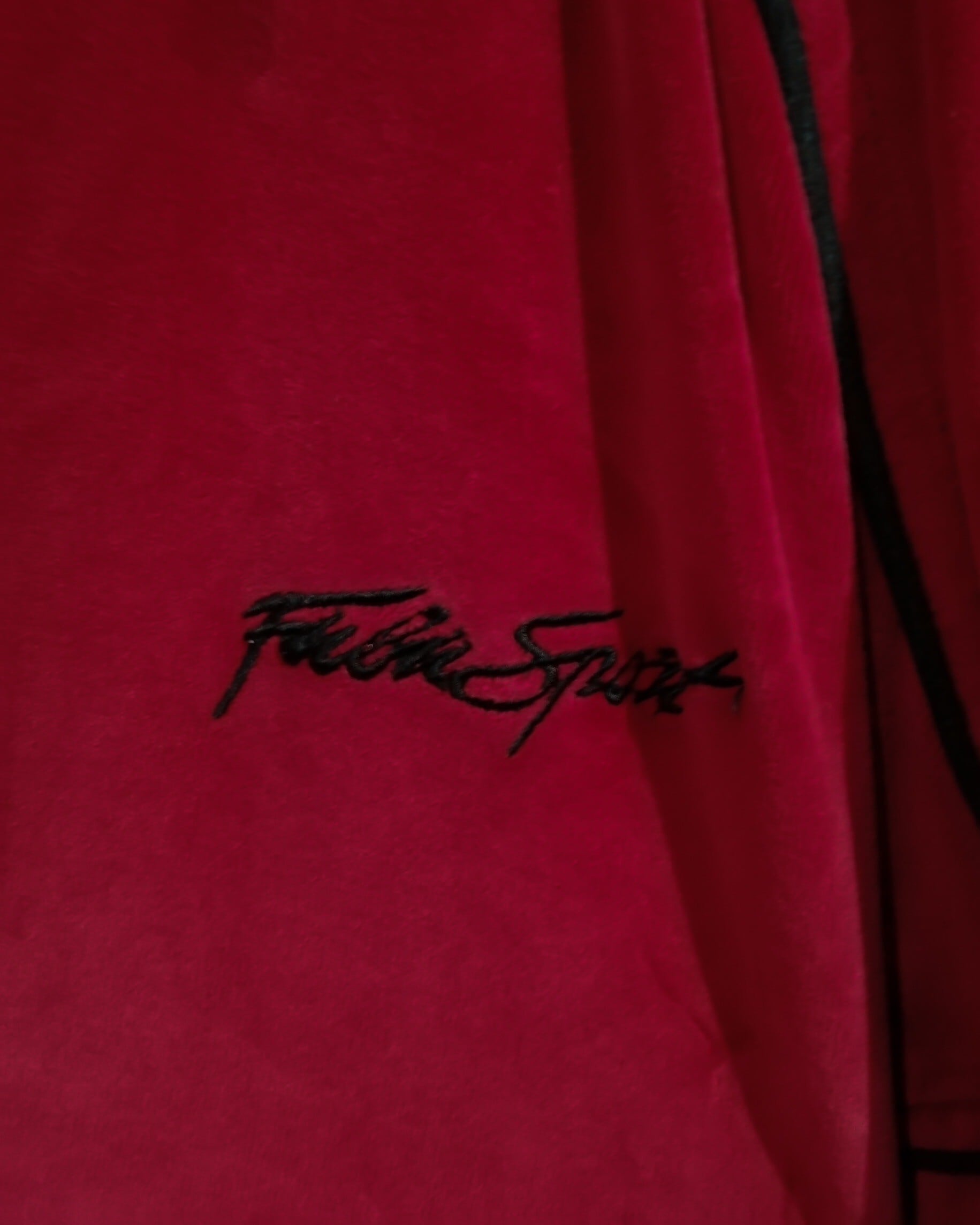 真紅のベロア素材ボディを使用し、スイングトップの形に落とし込んだジャケット。