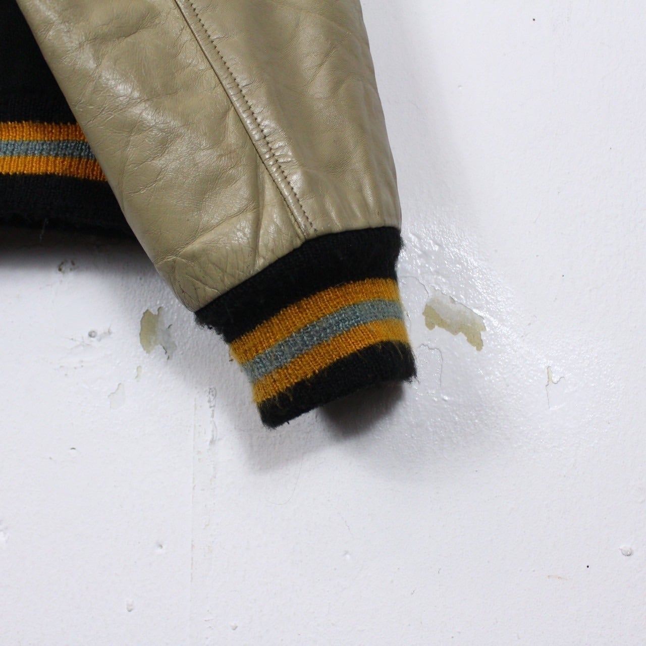 店頭、オンライン共に大好評を頂いているスタジャンから、ウールとレザーで切り替えられたスペシャルな一着をご紹介致します。