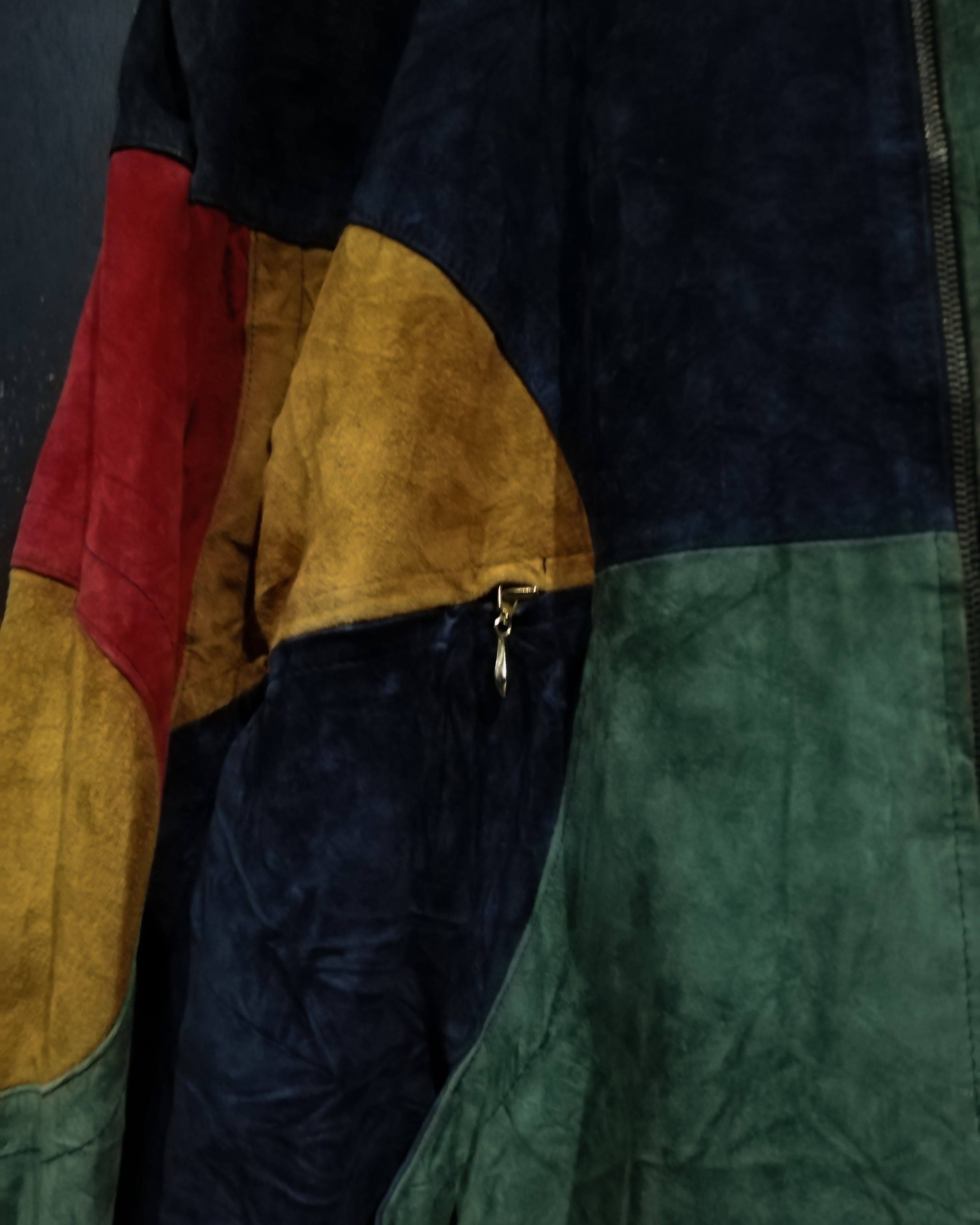 しっとりと柔らかく、滑らかなスエードレザーを用いて、アシンメトリーにカラーを切り替えたボンバージャケット。