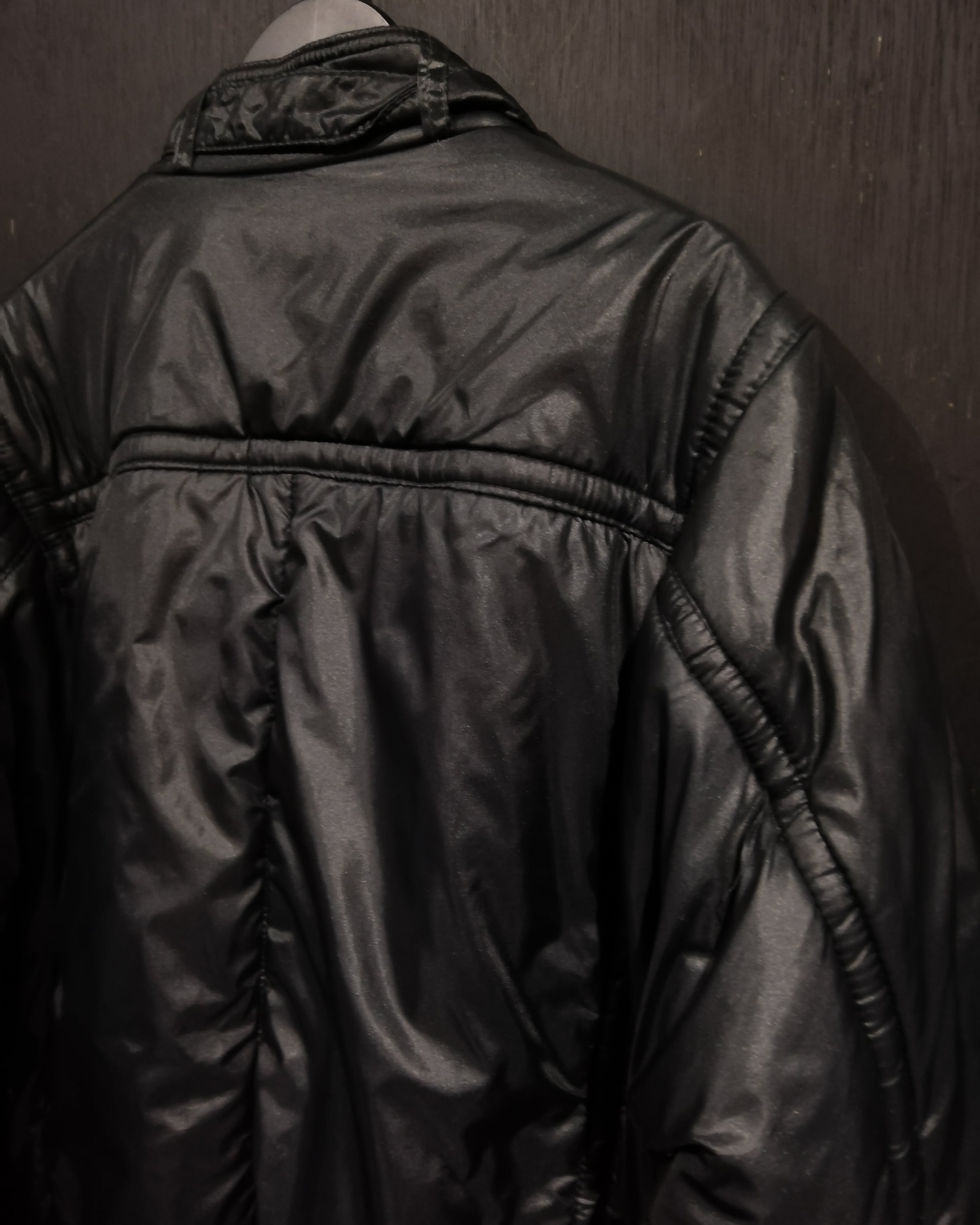 滑らかでタフなナイロン素材をベースに、随所はバイカーアイテムらしいギミックの数々を載せた80's ヴィンテージのジャケット。