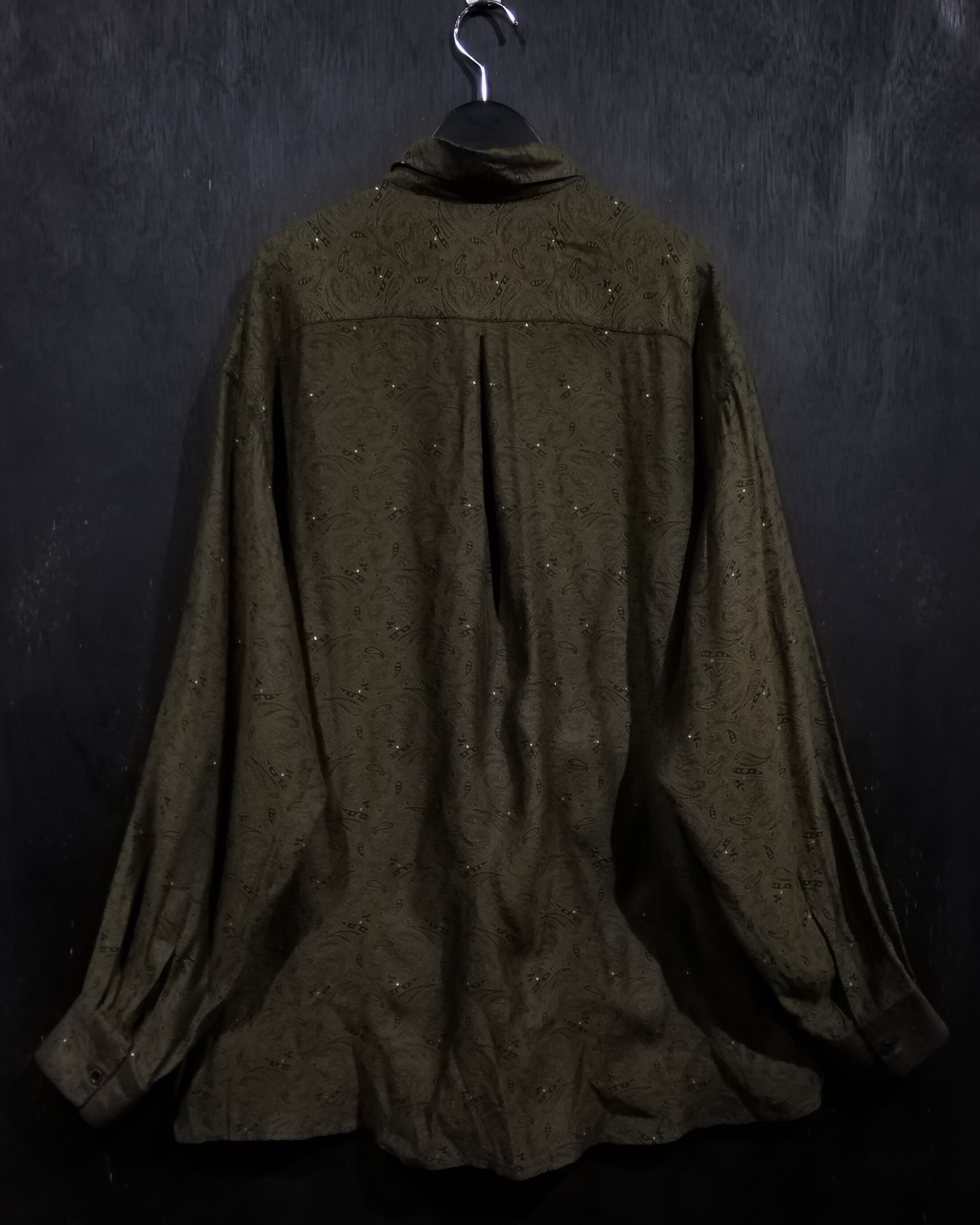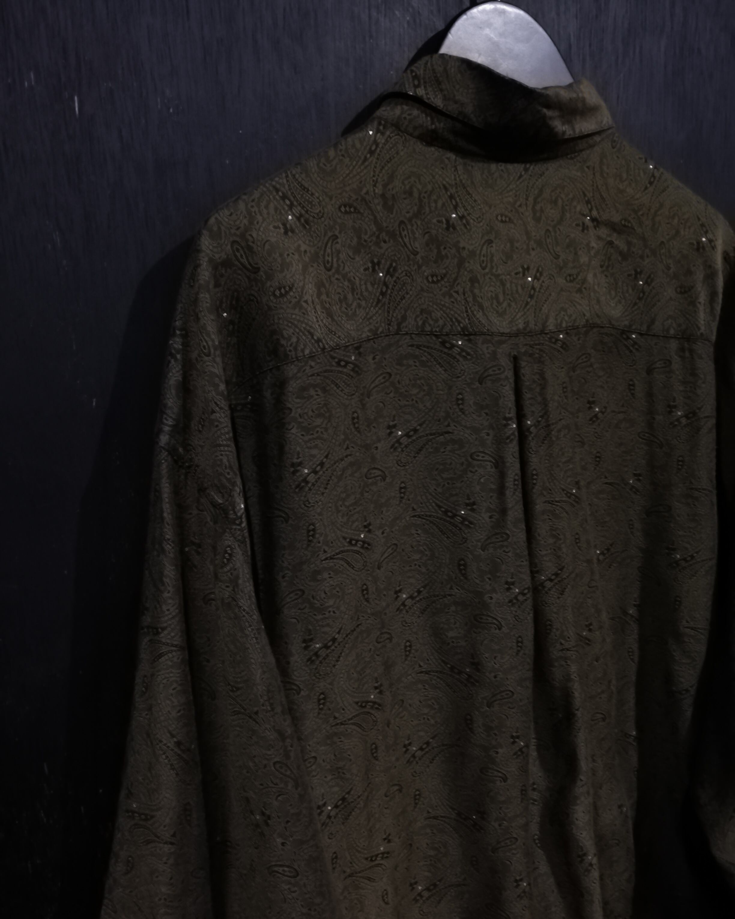 レトロな雰囲気を漂わす渋いゴールドカラーのボディに、繊細な織りでペイズリー柄を全面に映し出した長袖シャツ。