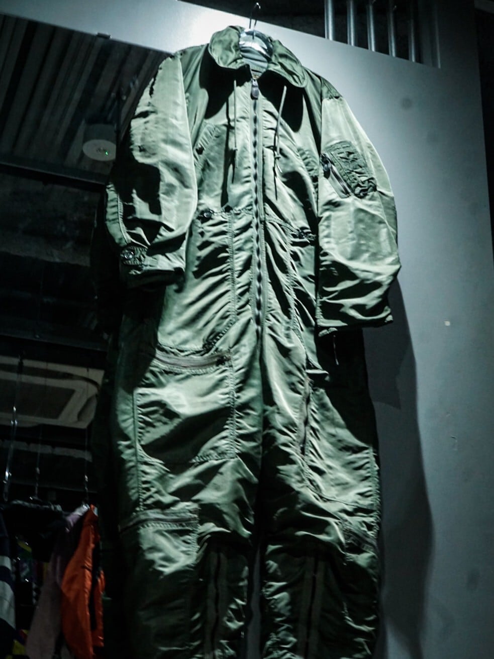 昨今はNー2BやMA-1の流行でミリタリーアイテムへの注目度が上がっていますが、こちらのジャンプスーツも服好きには見逃せません。