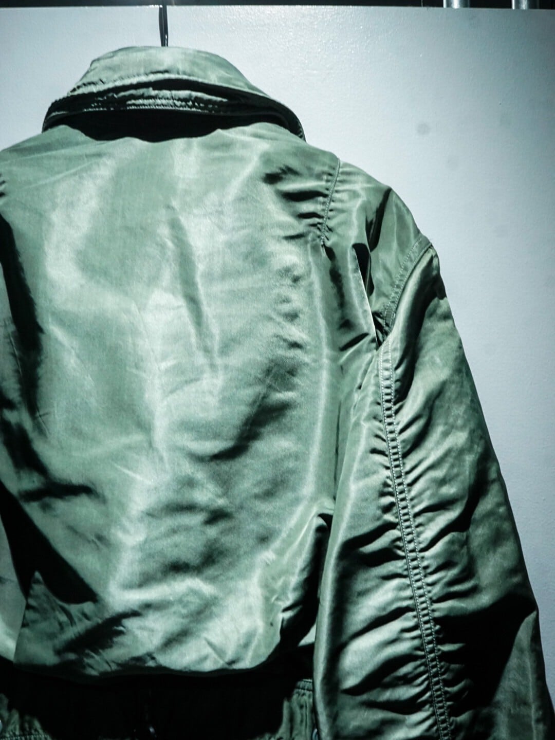アームは立体裁断によって緩やかなカーブを描くグッドシルエットで、裏地にはL-2Bなどに用いられていた独特な光沢を放つ、滑らかなレーヨン×ウールを用いており着心地も抜群なんです。