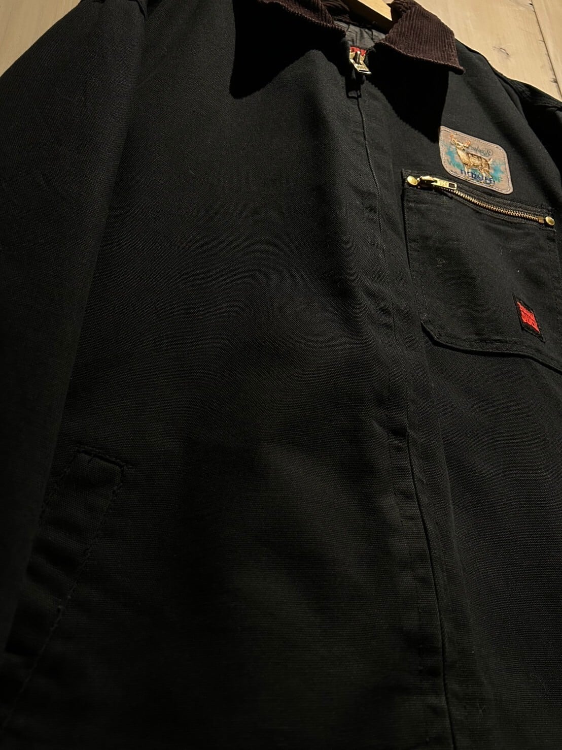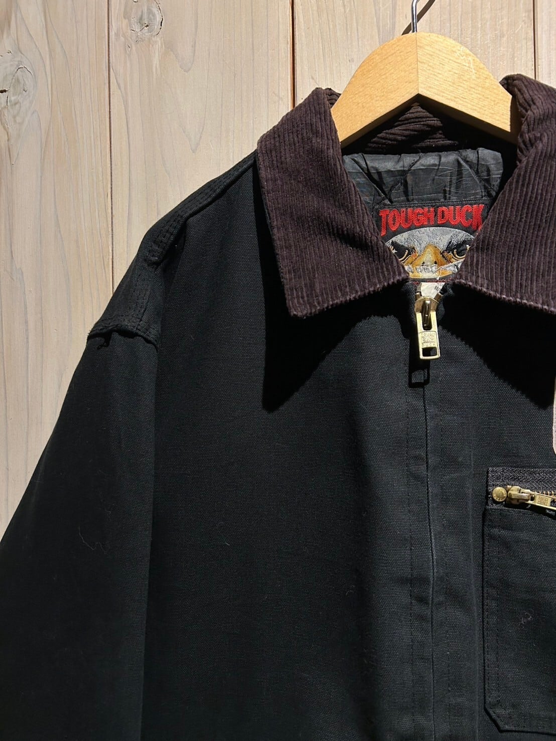 襟にはブラウンのコーデュロイを切り替え。カジュアルなダック生地に、コーデュロイの無骨さをアクセントに加えアイテムの雰囲気を底上げしています。