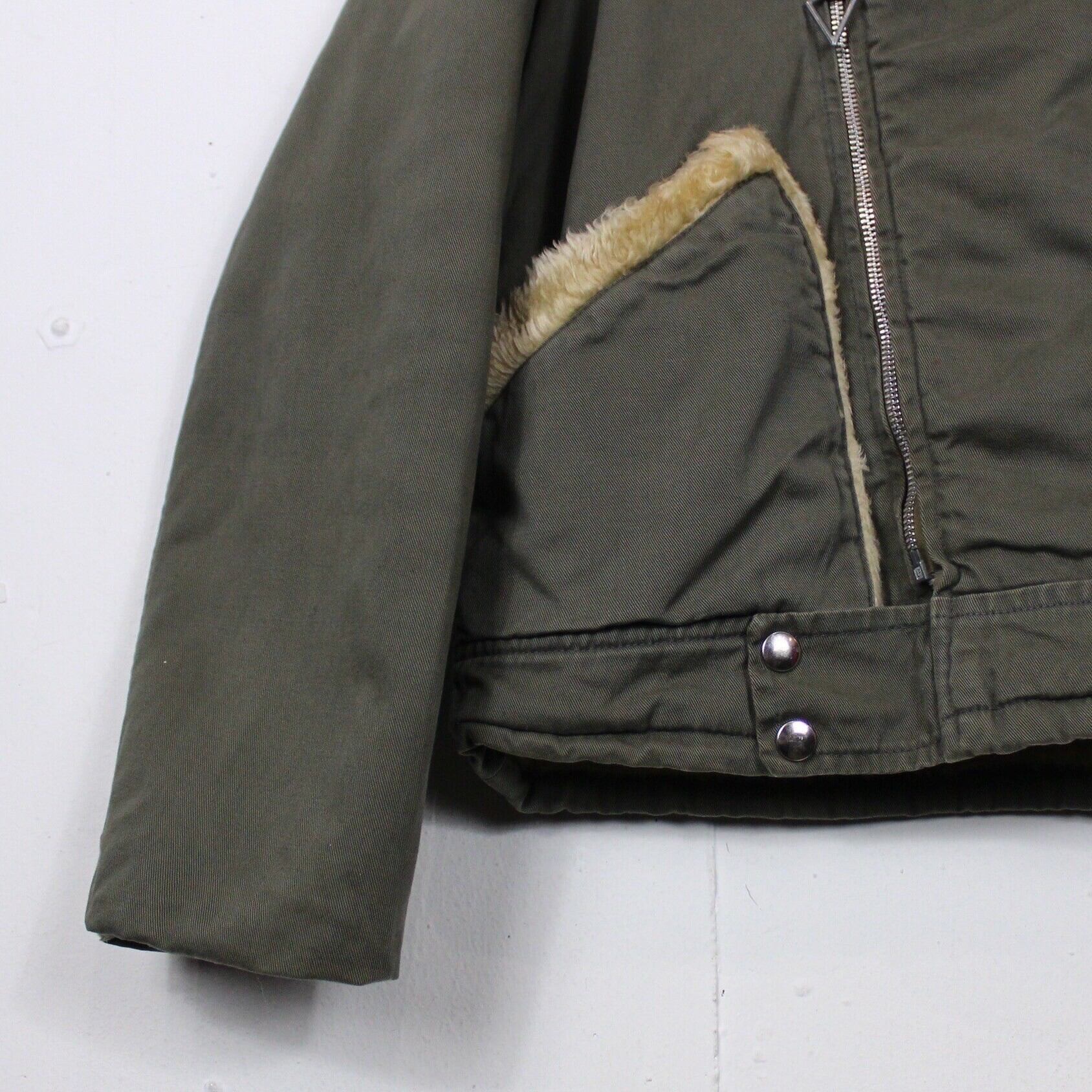ハリのあるセージグリーンのボディに内側にモッフモフのファーを敷き詰め、ダブルのライダース型に落とし込んだ60〜70's ヴィンテージのジャケット。